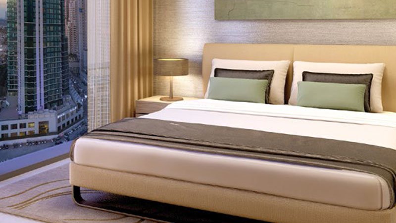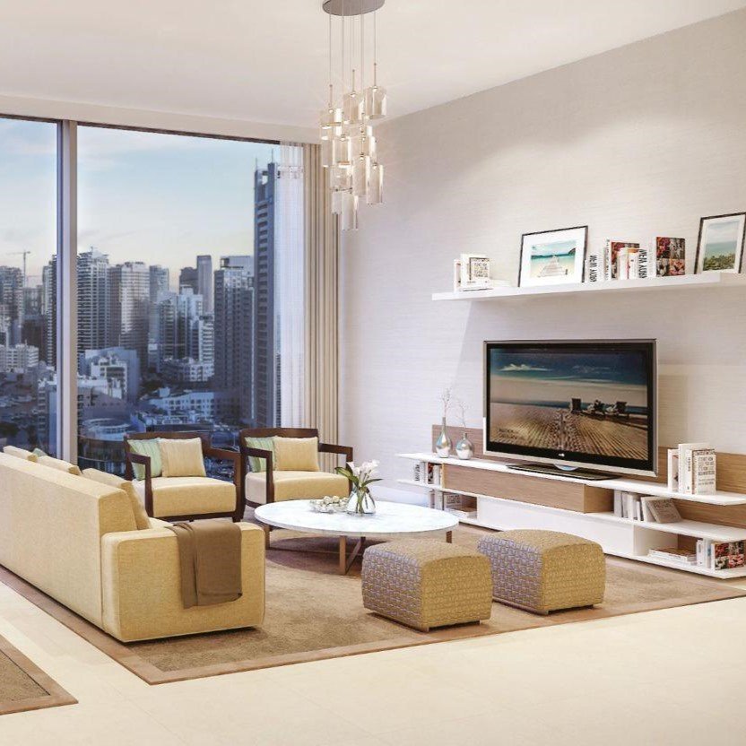 The towers offer 1, 2, and 3-bedroom apartments with panoramic views of Palm Jumeirah, the Arabian Gulf, and Dubai Marina. Interiors are finished with stone and wood surfaces, stylish fittings, and modern European-level appliances.