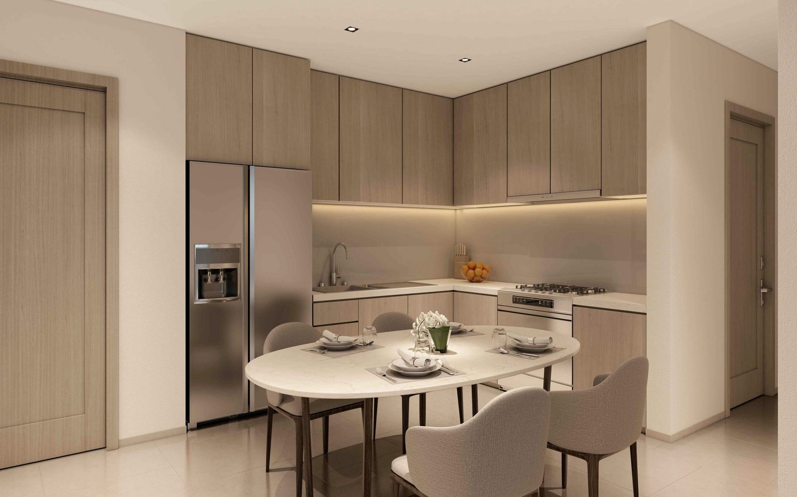 The development offers a collection of 1–3 BR apartments, 3–4 BR townhouses, and exclusive 4 BR penthouses, designed with premium interiors, bespoke finishes, and theatrical architecture. With panoramic views of Burj Khalifa and Dubai Fountain, residents enjoy an unmatched cultural and cosmopolitan lifestyle.