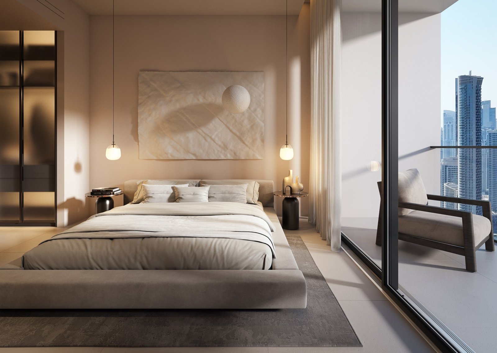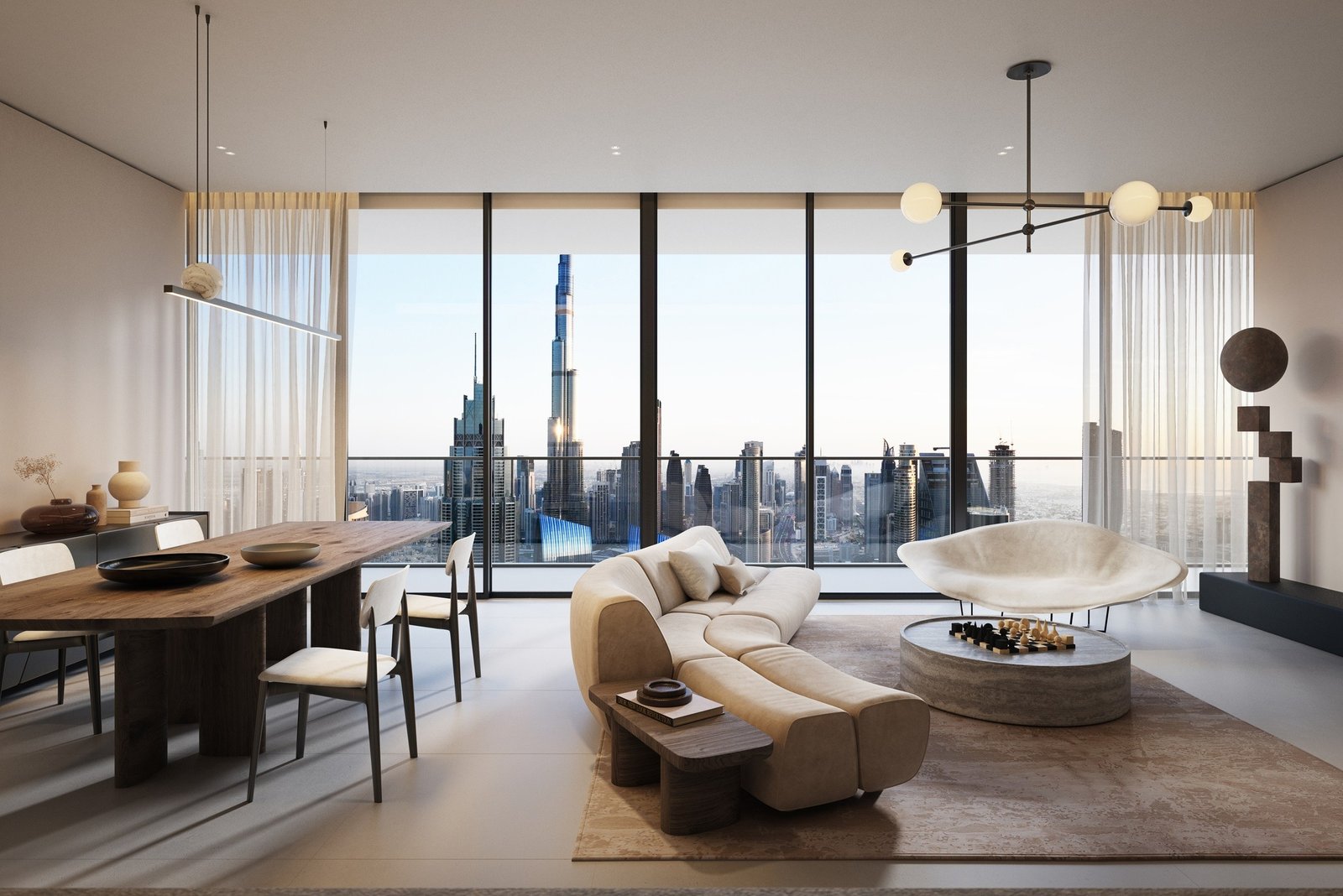 Inside the residences, the focus shifts to space, comfort, and wellness. Panoramic glazing brings in abundant natural light, offering residents unblocked views of Dubai’s skyline from every angle. The layouts are open and efficiently planned so that every inch of space adds functional value. Kitchens with islands support modern living and social interaction. Spa-inspired bathrooms bring tranquility into daily routines, and walk-in wardrobes ensure convenience and luxury.