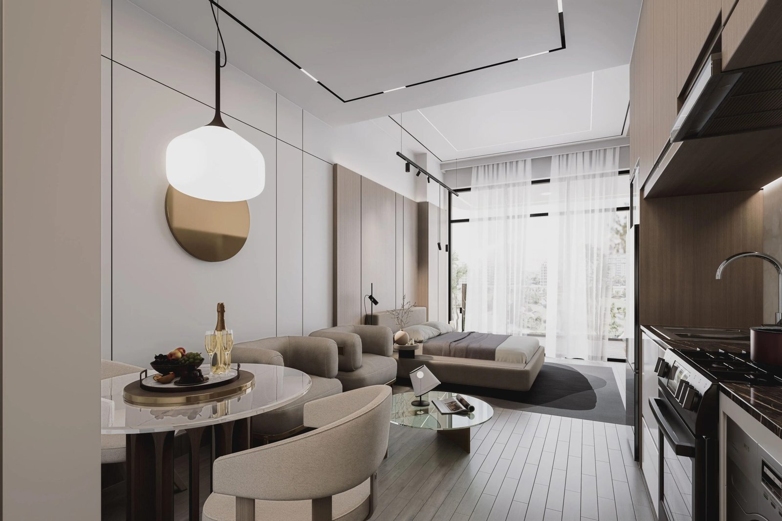 Al Haseen Residences 5 offers a variety of residential units, including studios, one-bedroom, two-bedroom, and three-bedroom apartments. Each apartment is meticulously designed with high-quality finishes, light-colored interiors, and spacious layouts, ensuring comfort and elegance for modern living. The project’s interiors highlight refined craftsmanship, premium materials, and functional layouts that enhance the overall living experience.