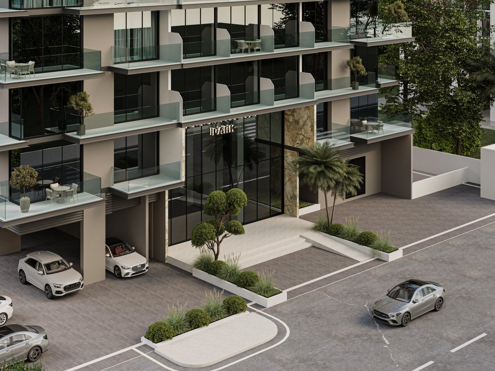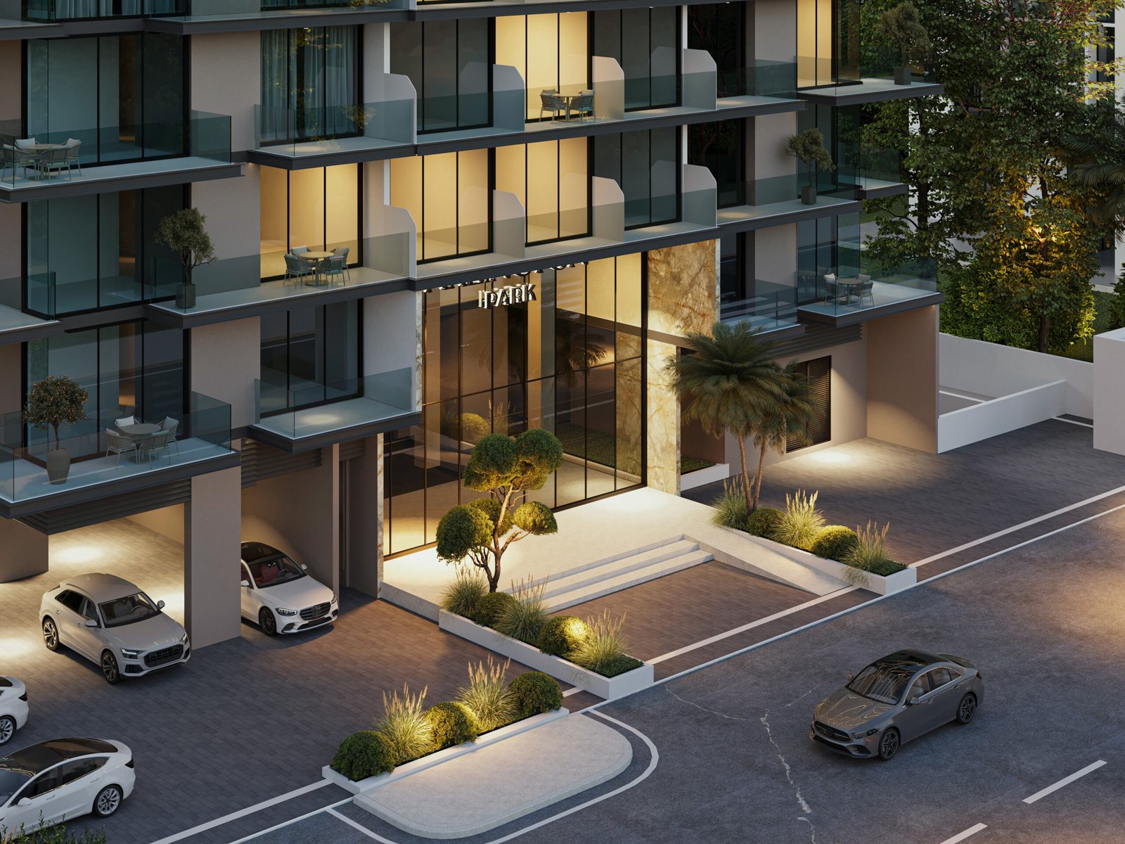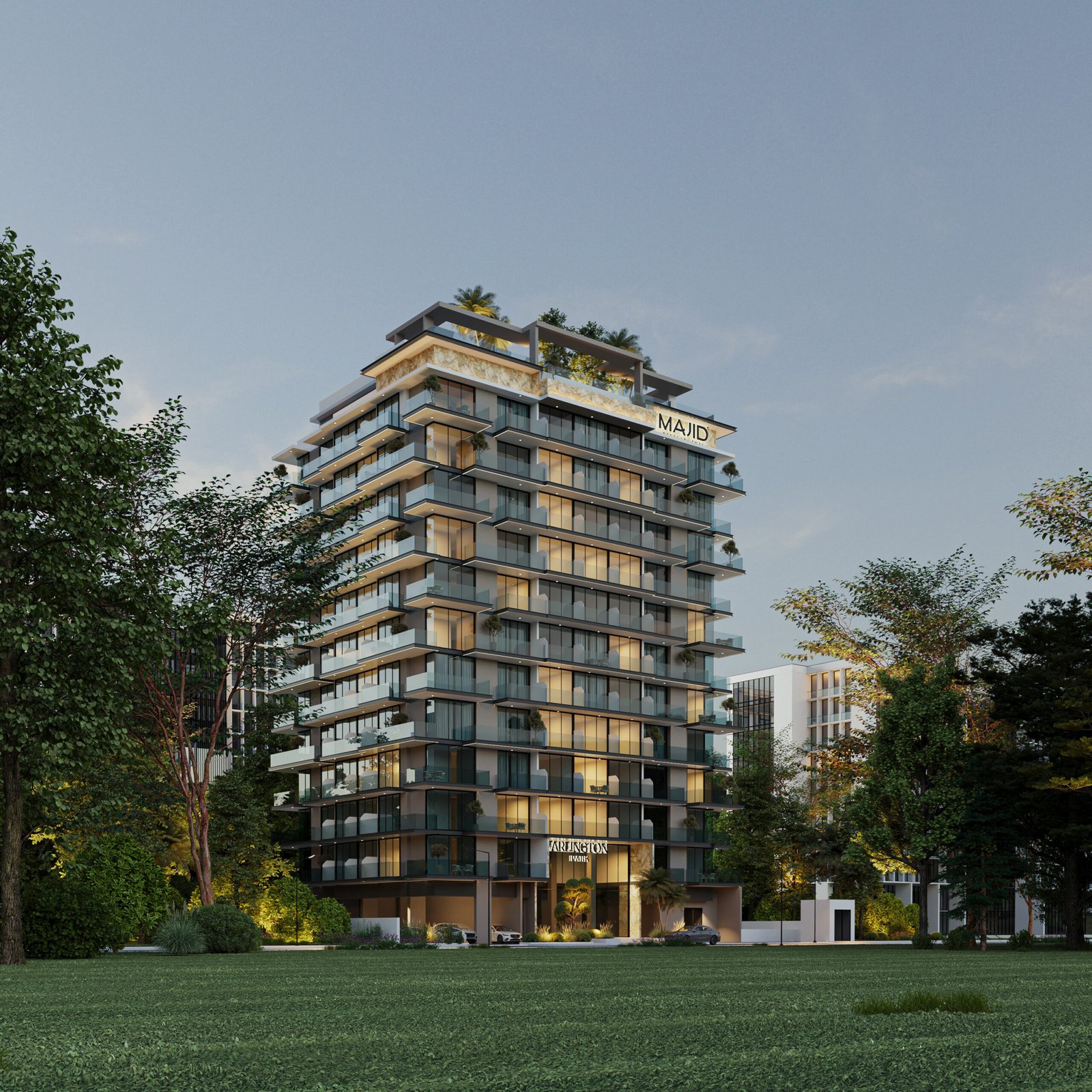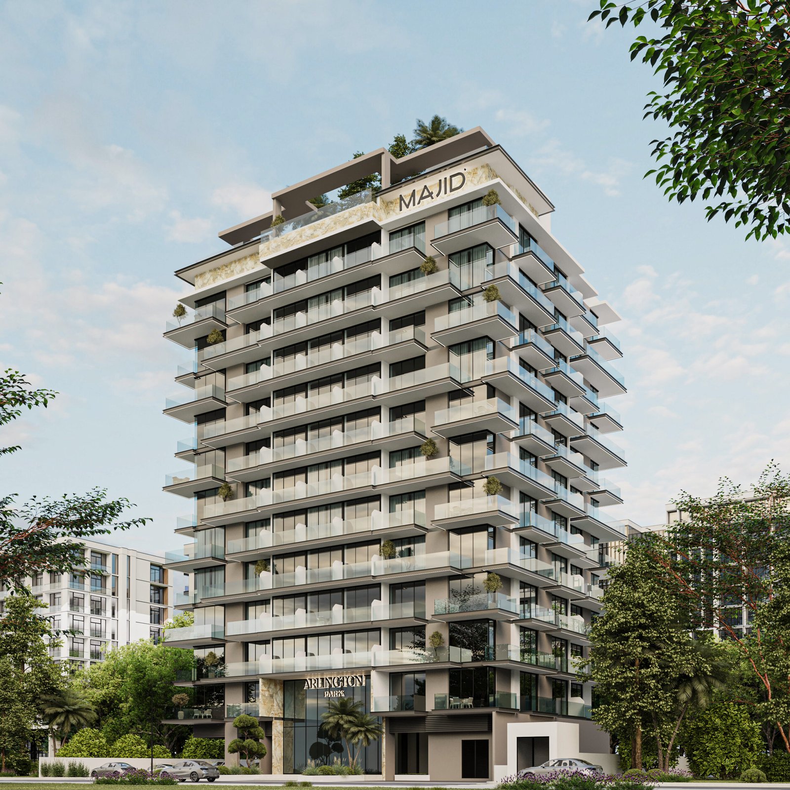 Arlington Park by Majid Developments is an off-plan residential community in Dubai Land Residence Complex (DLRC). The mid-rise development offers 140 fully furnished apartments across 12 residential floors above two basement levels.