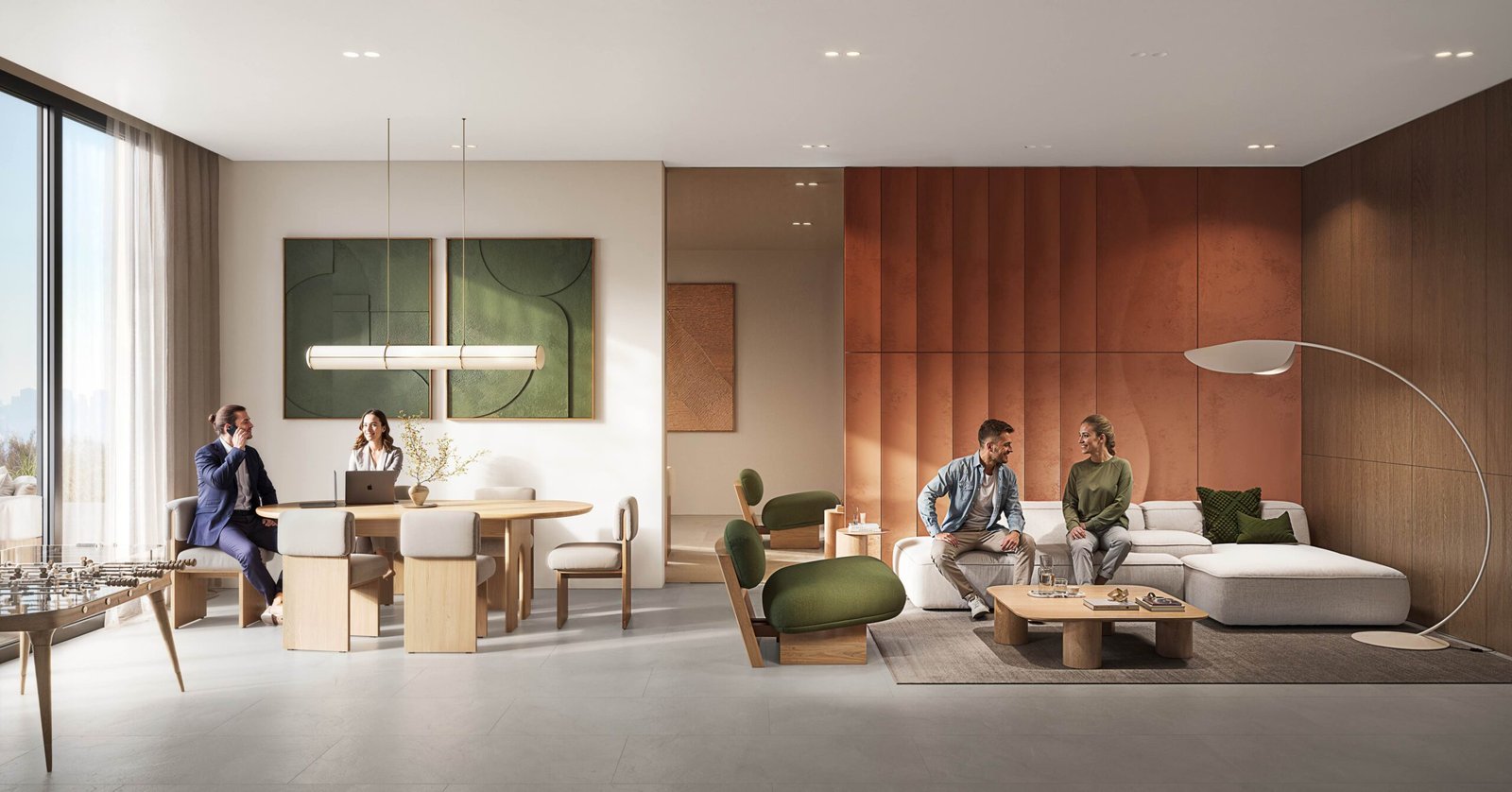 The design reflects modern architecture and vibrant interiors, with khaki, sunset orange, and neutral tones giving each unit a warm and elegant feel. Common spaces are designed to encourage balance and well-being, while private spaces emphasize comfort and style.