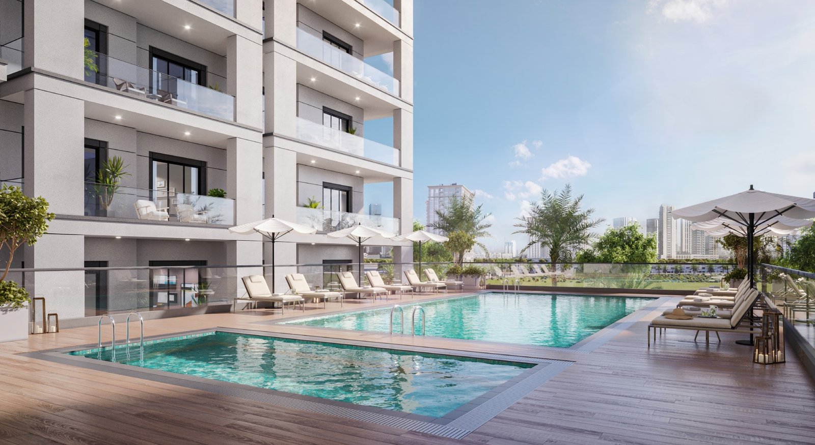 The interiors showcase contemporary design elements inspired by Art Deco architecture, with a focus on geometric patterns, elegant lighting, and high-quality materials. The development’s modern amenities, including a rooftop swimming pool, gym, garden, and social zones, further elevate the lifestyle of its residents.