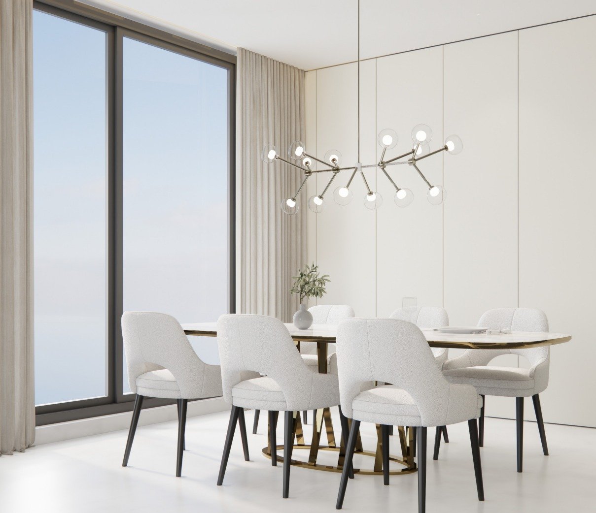 Residents can enjoy semi-furnished homes equipped with modern kitchen appliances, stylish interiors, and premium-quality finishes. Expansive windows provide stunning panoramic views of Dubai’s skyline, enhancing the sense of openness and elegance in every unit. The project’s smart home system adds an extra layer of comfort and technological advancement, allowing residents to manage their living environment effortlessly.
