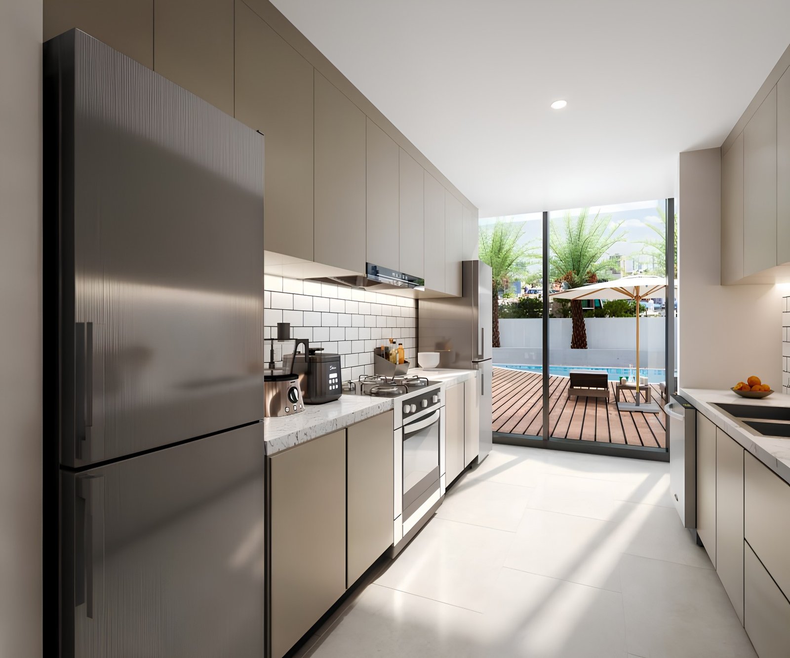 A luxurious rooftop infinity pool offers a serene retreat where residents can unwind while enjoying spectacular views of the Dubai skyline.