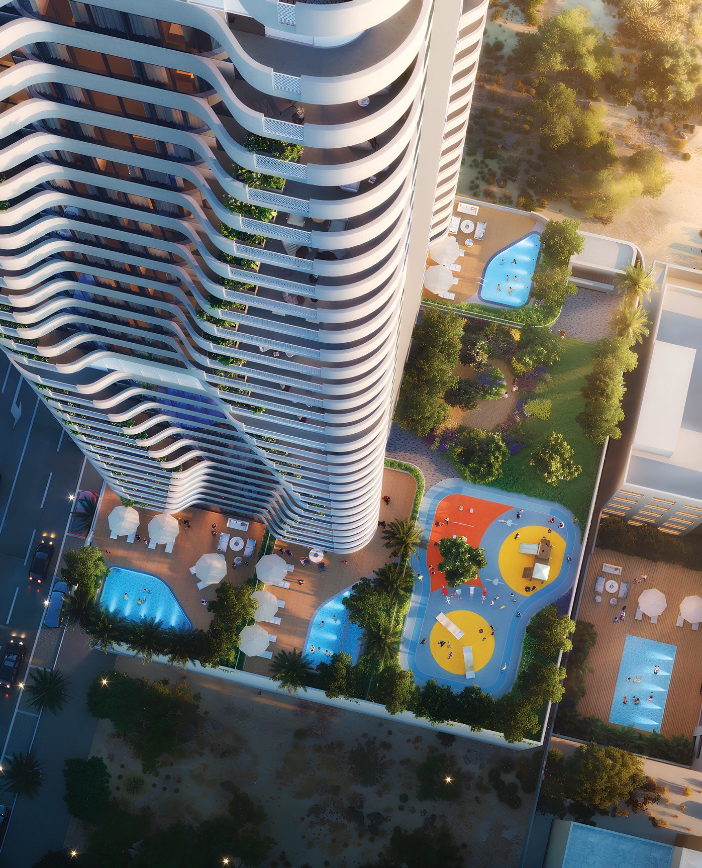 Azha Millennium by Azha Development stands as an emblem of refined living and architectural innovation in Dubai’s Jumeirah Village Triangle. The project blends elegant design with modern functionality, providing residents with a contemporary lifestyle surrounded by world-class facilities. The design of the tower features soft, undulating balconies that create a dynamic look, symbolizing movement and life, while offering panoramic city views.