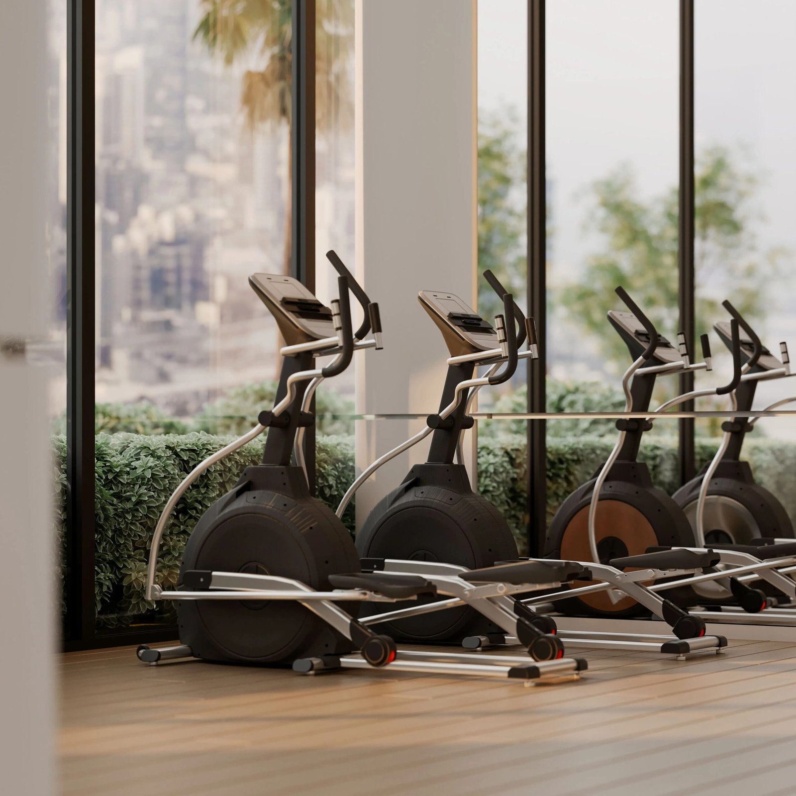 A fully-equipped indoor fitness center enabling year-round training with modern workout machines.