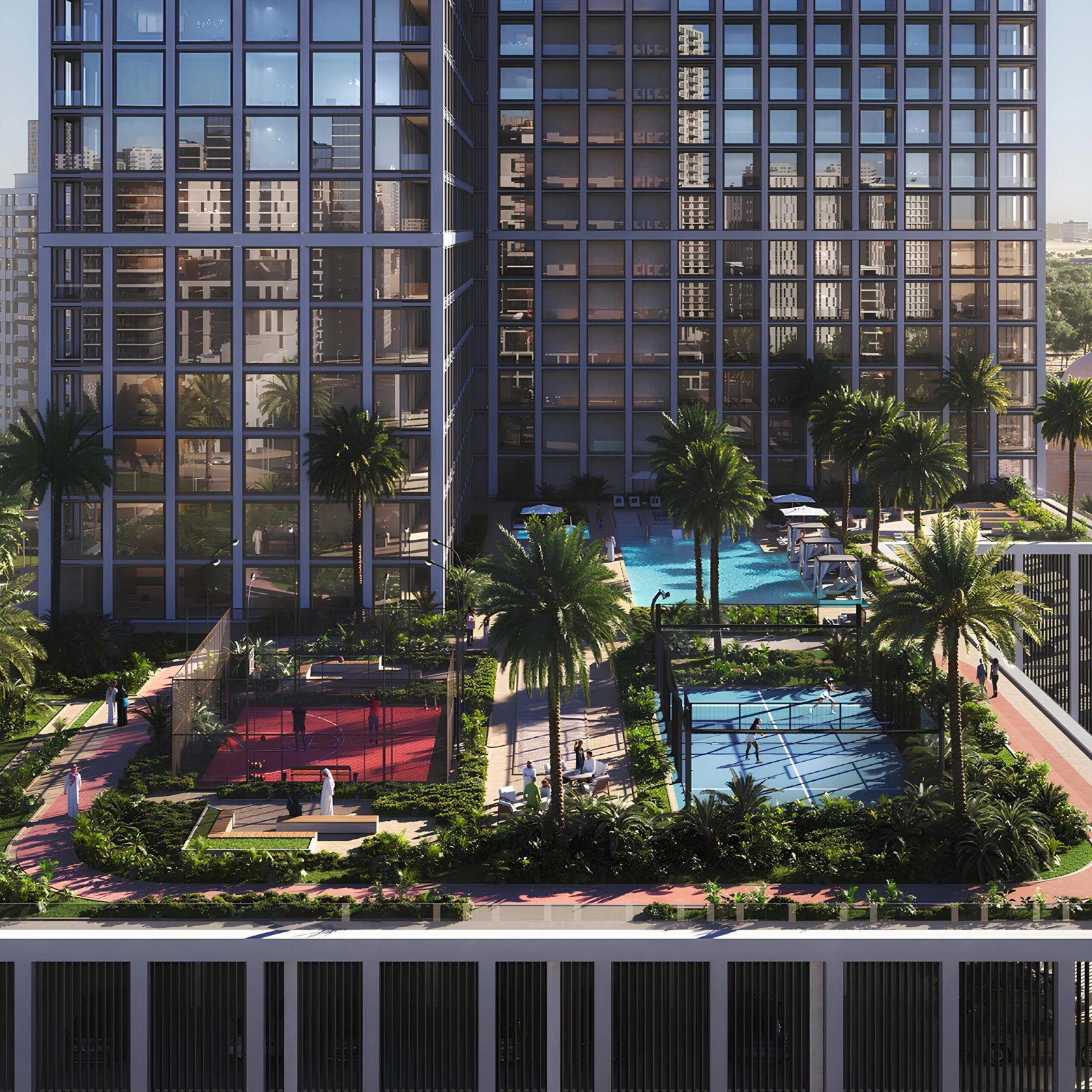 Community areas and podium-level amenities are designed to provide diverse recreation options. The tower includes ambient relaxation areas, landscaped zones, sports courts, and leisure amenities that cater to individuals, couples, and families. With dedicated fitness facilities, pools, open-air cinema, and social zones, residents can enjoy a vibrant, active lifestyle without leaving the community.