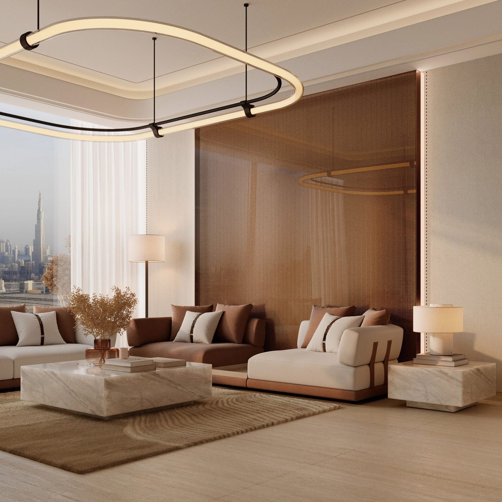 The thoughtfully designed interiors of Binghatti Vintage feature warm neutral tones, high-quality finishes, and natural materials such as stone panels, bronzed fixtures, and glass surfaces. These elements collectively produce an atmosphere of tranquility, making the residences ideal for comfortable daily living.