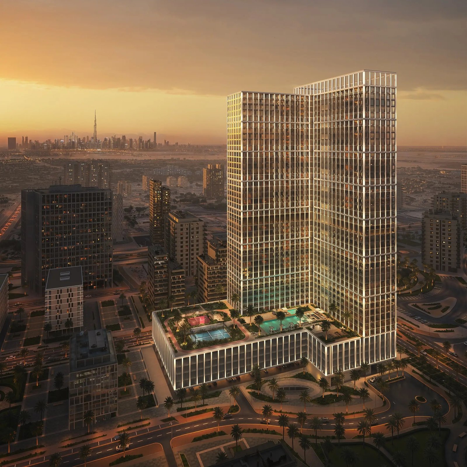 Binghatti Vintage is designed as a refined residential tower for buyers seeking a modern, well-connected home in Dubai. Built by Binghatti Developers, the project integrates architectural sophistication with unique lighting accents and geometric elements that reflect Binghatti’s signature style. The tower stands out through its bold façade, dynamic lines, and vibrant lighting effects that enhance its visual presence within Majan’s urban landscape.