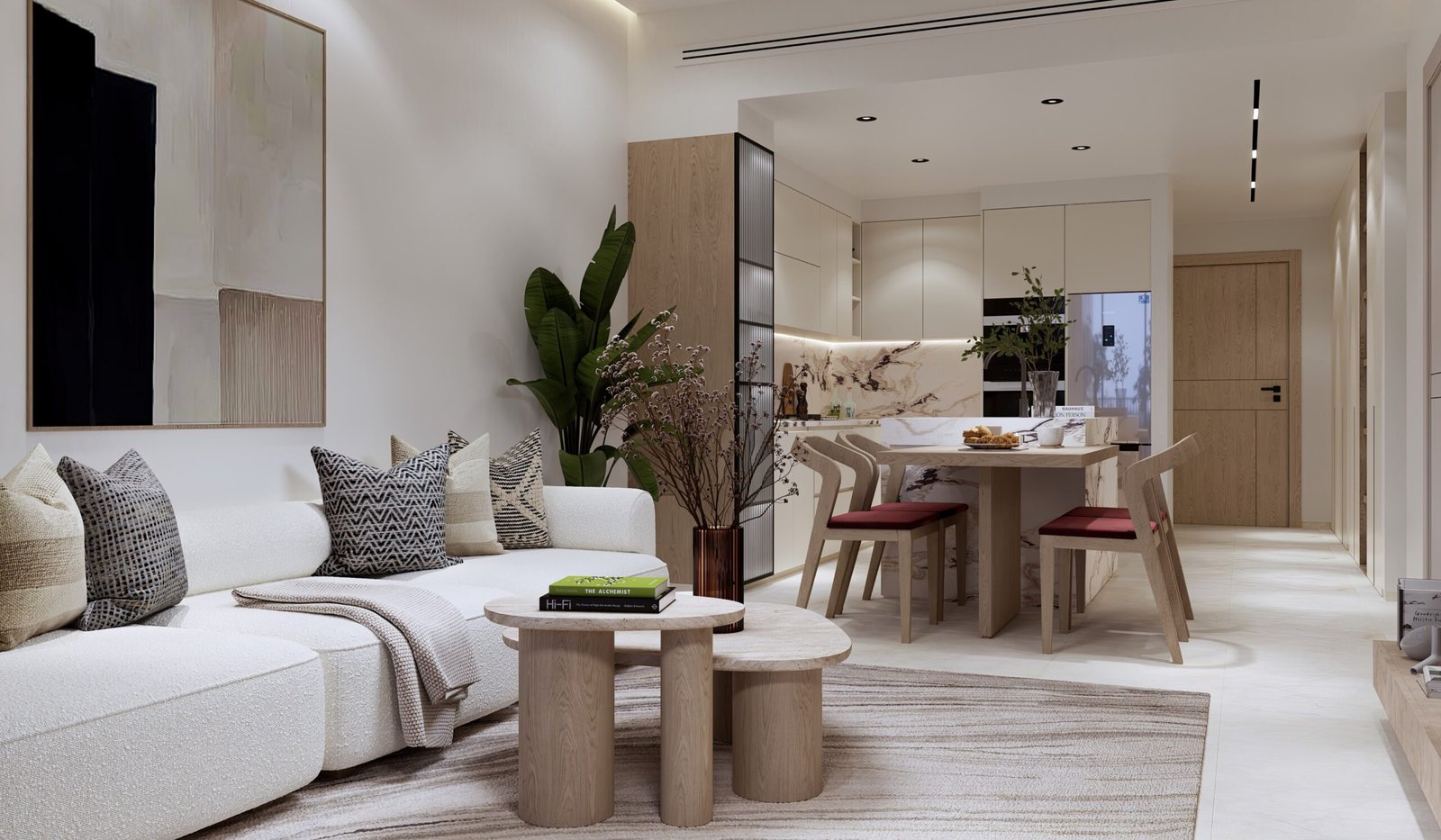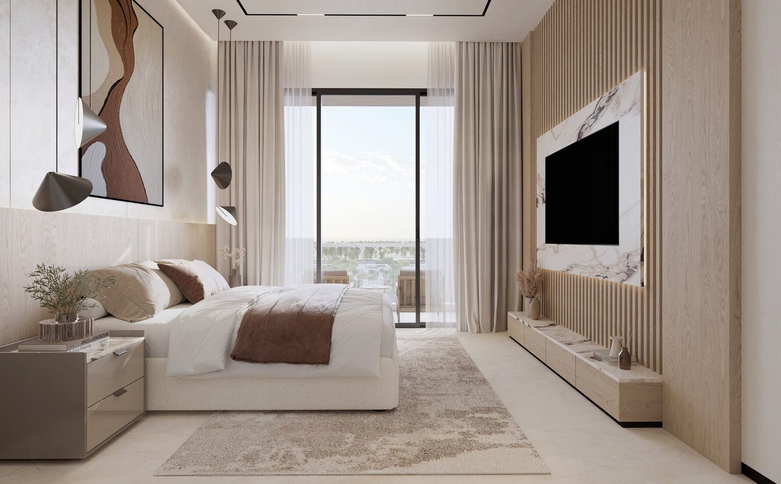 The project emphasizes natural light and ventilation throughout its design. Apartments benefit from floor-to-ceiling windows that not only flood interiors with sunlight but also offer expansive views of the Dubai South district, reinforcing a connection to the outdoors.