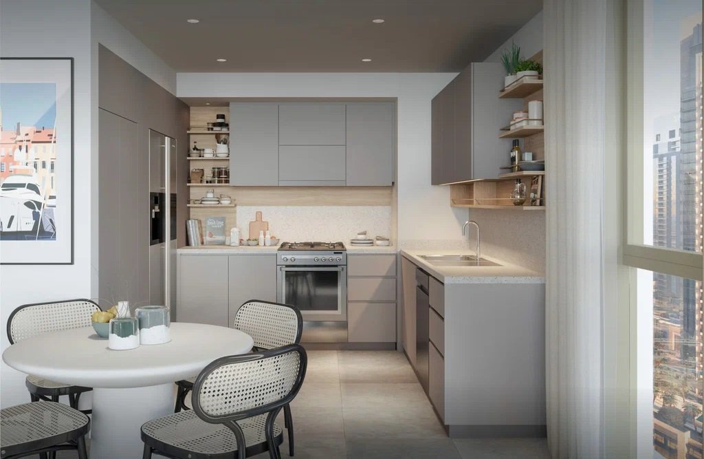 Residences are thoughtfully designed to maximize space, natural light, and views of the Dubai skyline and Creek promenade. Apartments offer elegant interiors with open kitchens, built-in wardrobes, and balconies overlooking the water. The townhouses provide villa-style living within a modern urban setting.