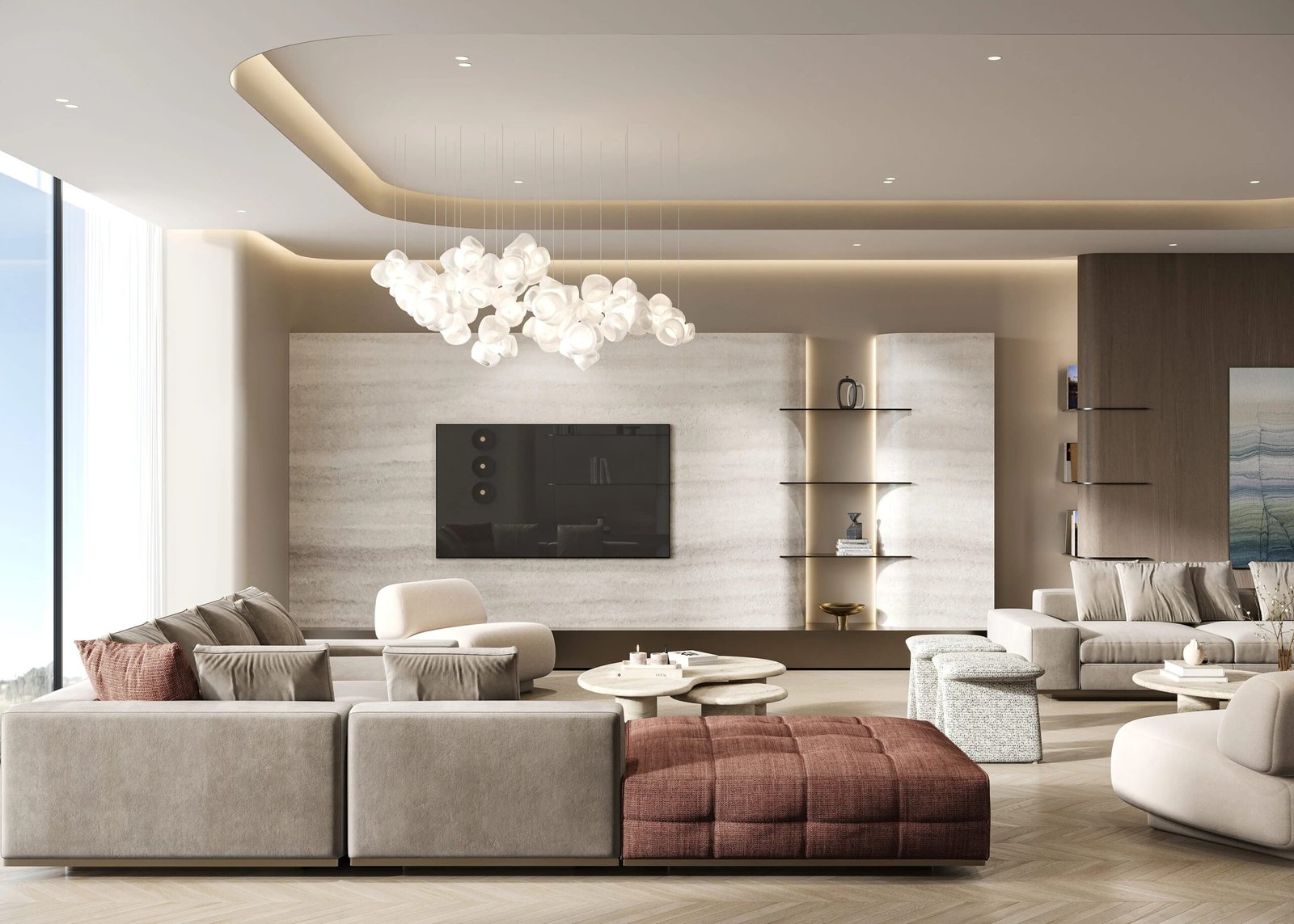The façade of Divine Al Barari uses light tones and panoramic glass to create a sleek, clean appearance that blends harmoniously with the lush surroundings. The inclusion of green terraces throughout the building adds a layer of natural beauty, making each home feel connected to nature despite being in an urban setting. The internal layouts emphasize openness, efficient use of space, and seamless indoor-outdoor living. With floor-to-ceiling windows, units are bathed in natural sunlight, enhancing the overall living atmosphere and improving energy efficiency.