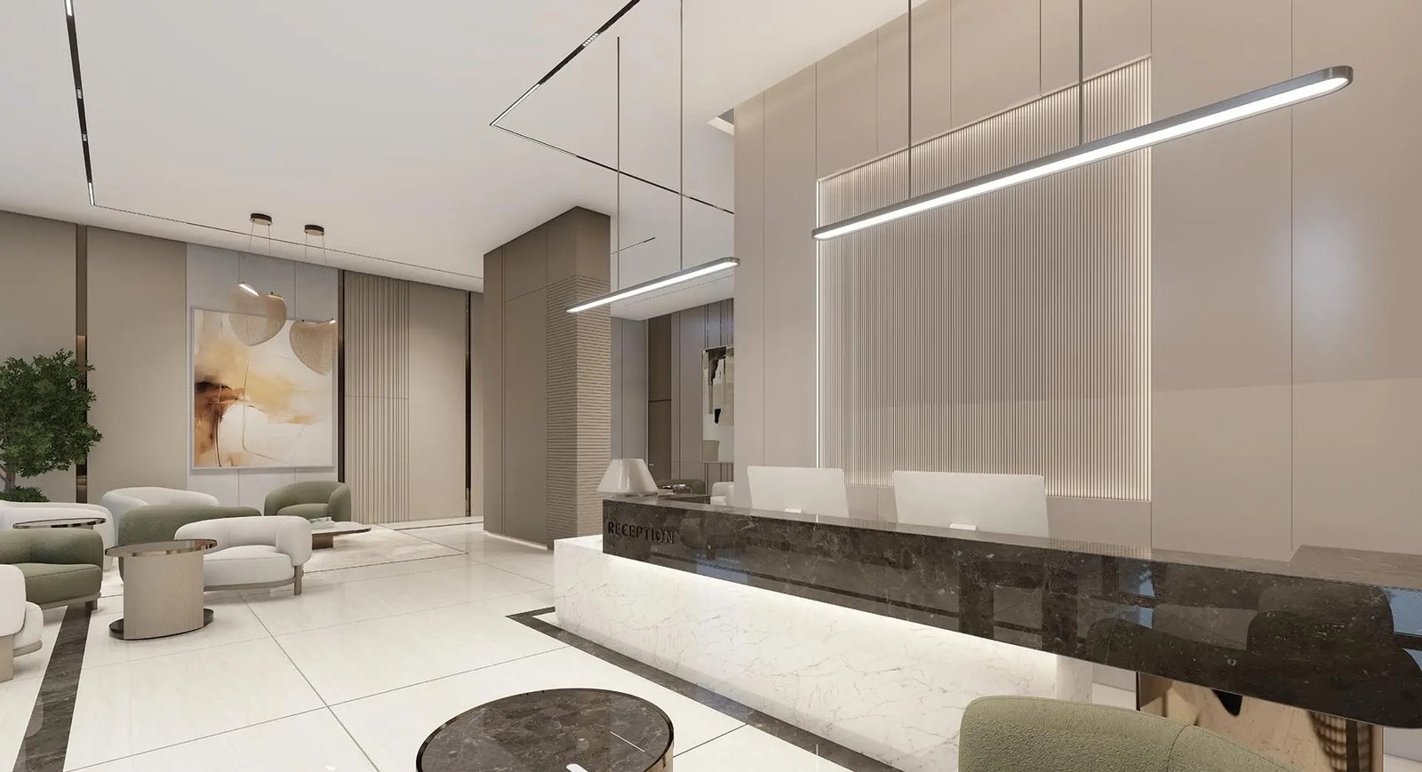 A spacious and elegantly designed lobby providing a welcoming atmosphere.