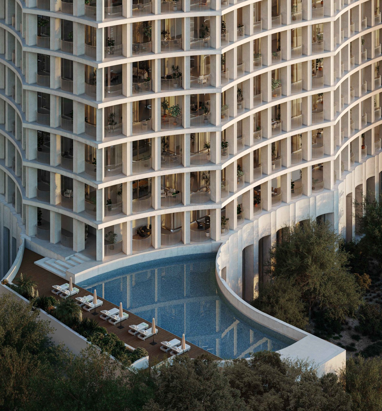 Eden House Za'abeel is envisioned as a luxurious sanctuary where refinement, architectural precision, and timeless design merge to deliver an extraordinary residential environment. The tower’s sculptural concrete exterior creates a bold presence, enriched by curated landscaping that seamlessly integrates with the forms of the building. The overall concept places strong emphasis on tranquility, natural textures, and balanced lighting. Inside Eden House Za'abeel, every residence features premium natural materials such as stone, marble, and fine wood, creating a serene monochrome ambiance that enhances the flow of light throughout the space.