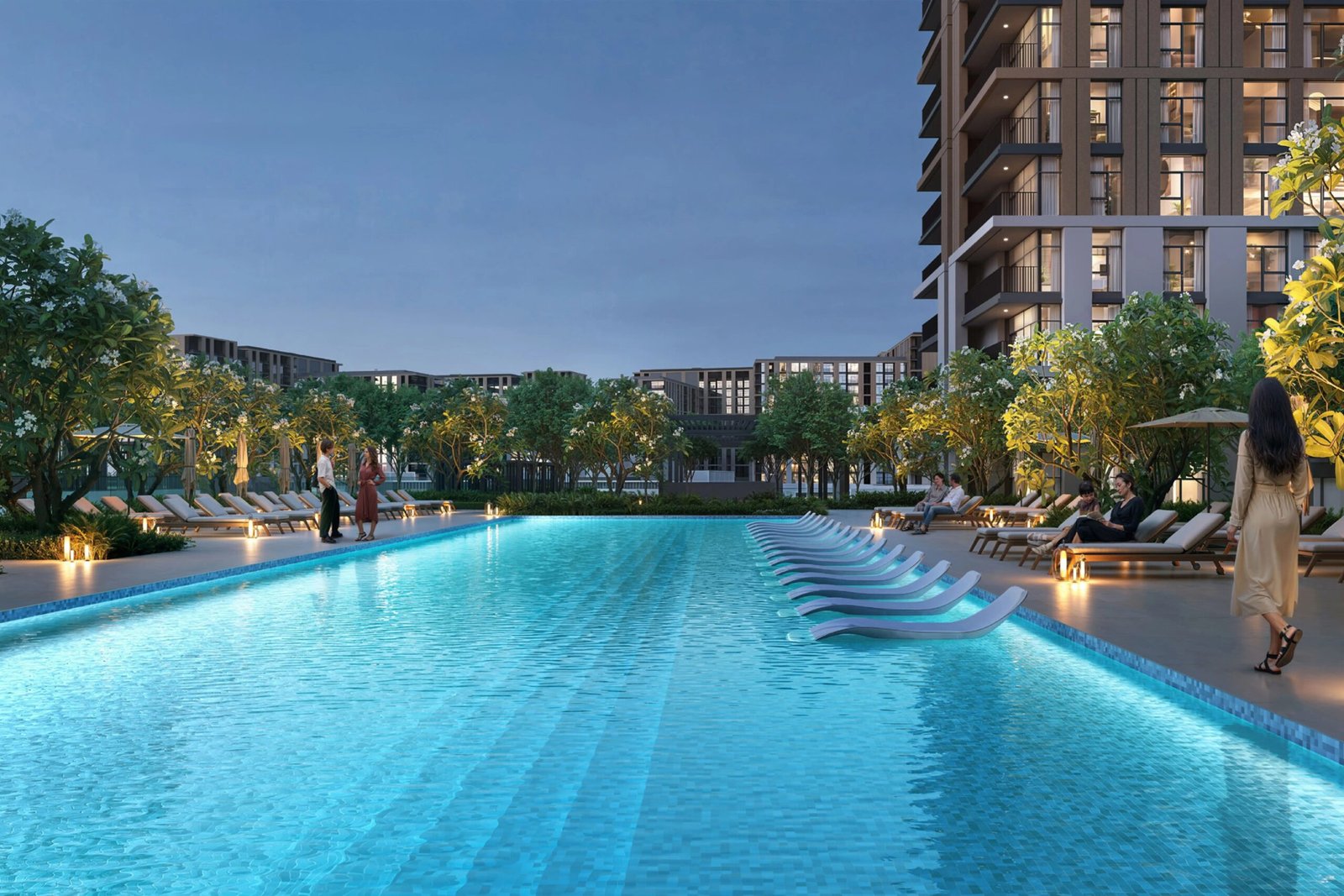Amenities include a shared pool, yoga areas, kids’ play zones, jogging tracks, sports courts, outdoor gym, BBQ areas, meditation zone, community lawns, and more. -