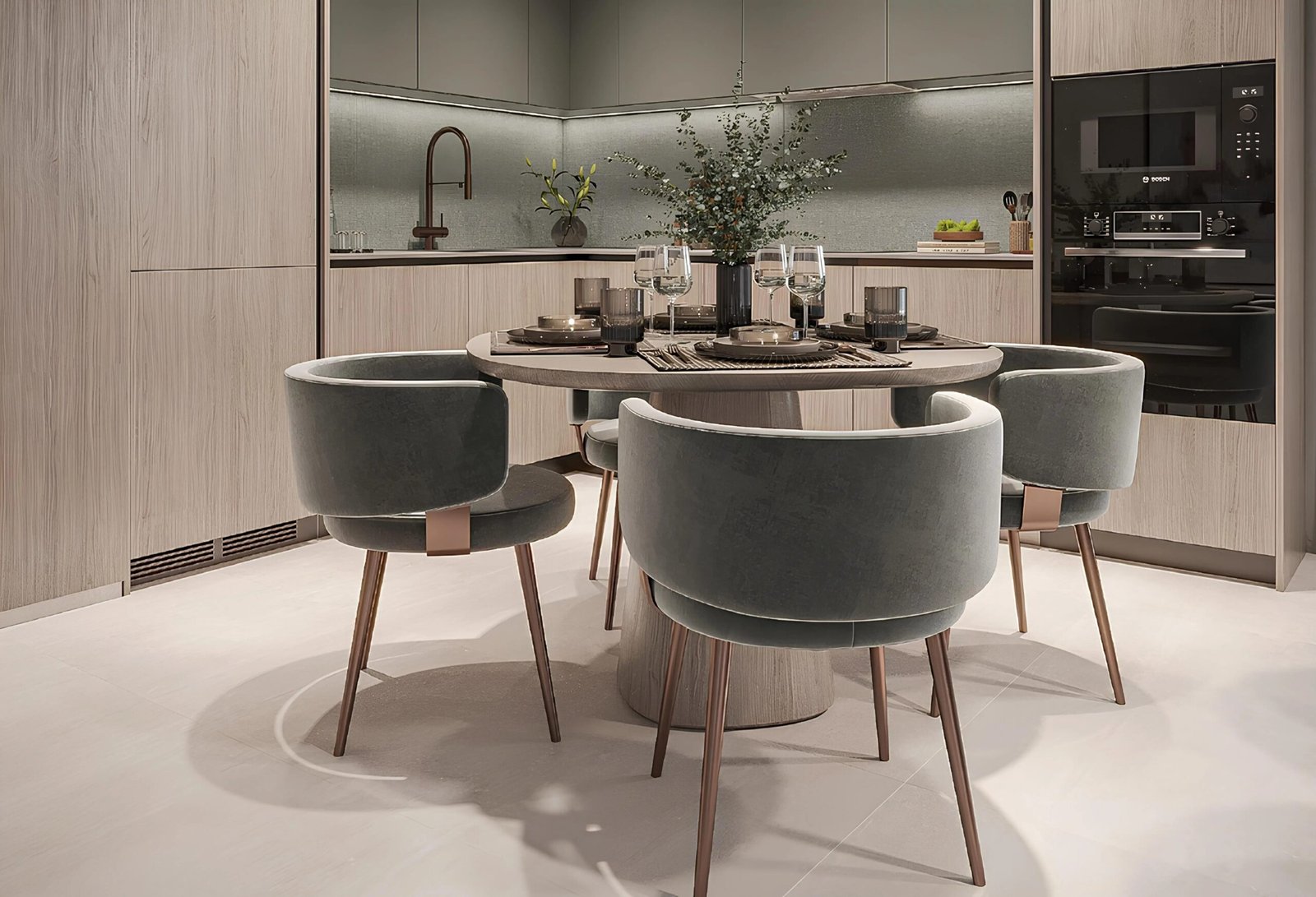 Every detail within Floareá Breeze is shaped around comfort, serenity, and high-quality aesthetics. The project offers a limited selection of luxurious one-, two-, and three-bedroom apartments, along with four exclusive townhouses that elevate privacy and spacious living. Materials such as textured wood, premium porcelain, and warm natural finishes are used extensively throughout the interiors. This design approach enhances the sophisticated feel of each home, making Floareá Breeze a benchmark of modern coastal living in Dubai.