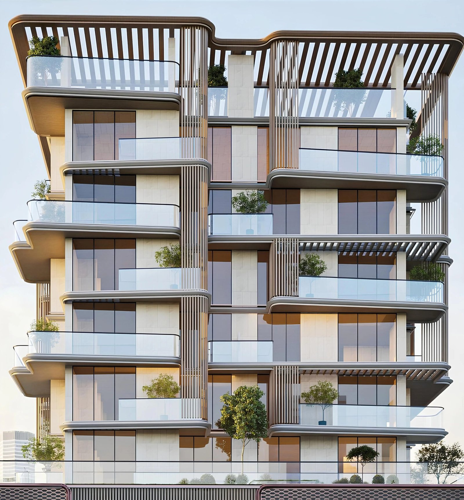 Floareá Breeze is an elegant residential development thoughtfully created to reflect the serene island lifestyle of the Dubai Islands. Designed by Mashriq Elite Developments, Floareá Breeze presents a beautifully modern structure featuring a ground floor, podium level, and six residential floors. The building design combines layered glass balconies, contemporary lines, soft natural colors, and landscaped greenery to create a peaceful and premium living environment.