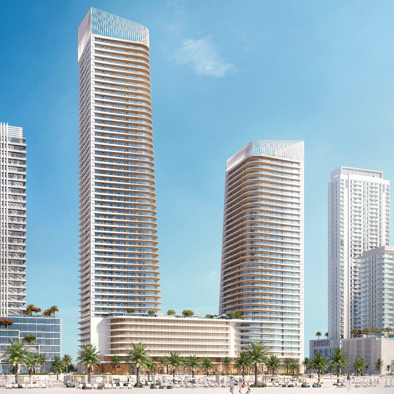 Inspired by Miami’s 1930s Art Deco District, the tower features clean architectural lines, opulent finishes, and interiors curated by Elie Saab. Every residence offers expansive balconies with uninterrupted views of Palm Jumeirah, the Arabian Gulf, and Dubai’s skyline.