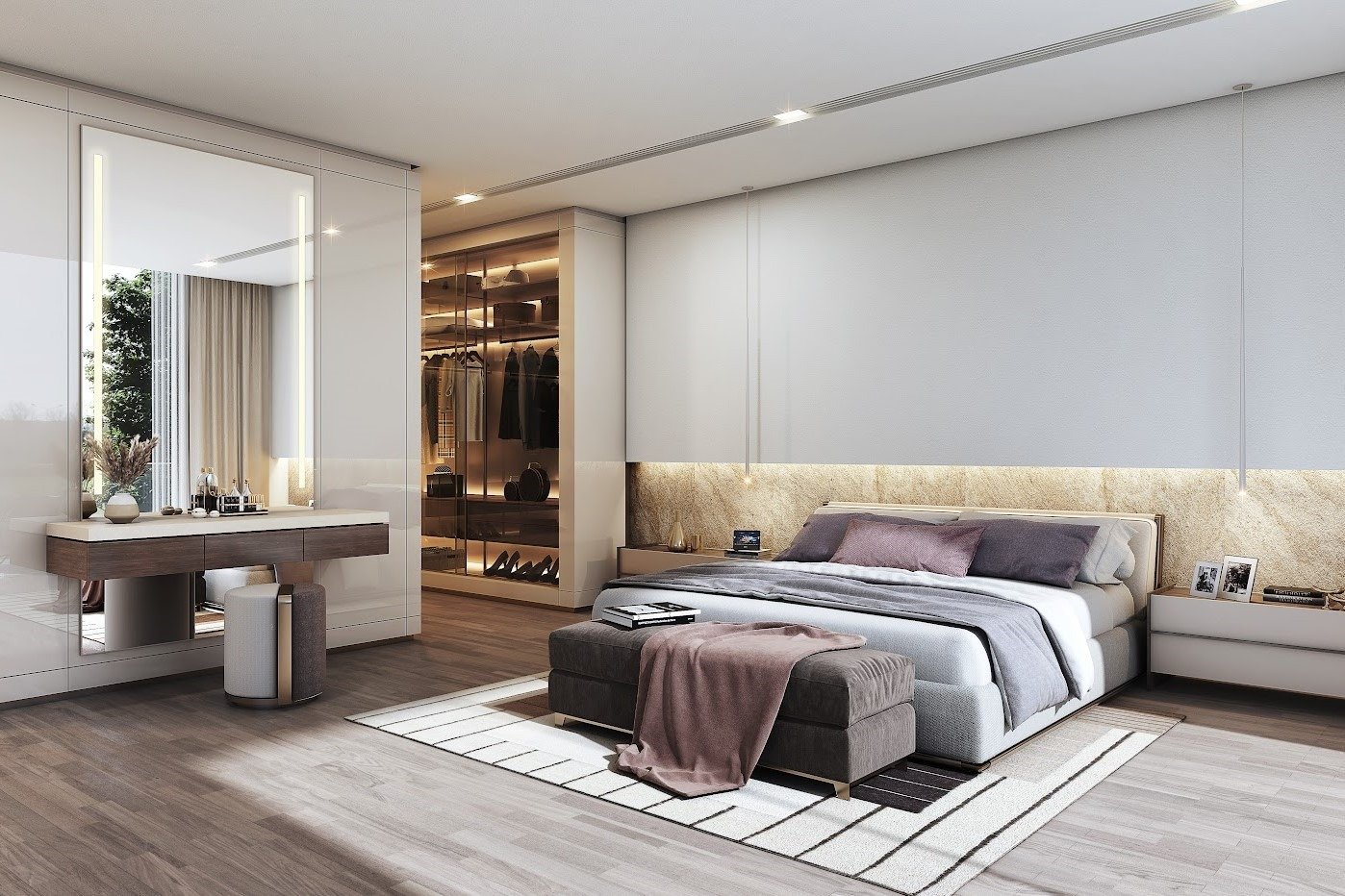 The interior design focuses on natural light, with large windows and open spaces that create a warm and welcoming ambiance. The villa kitchens are equipped with high-end appliances and generous storage, making them perfect for both everyday family meals and entertaining guests. Bedrooms are designed as personal retreats, complete with en-suite bathrooms and walk-in closets in many units.
