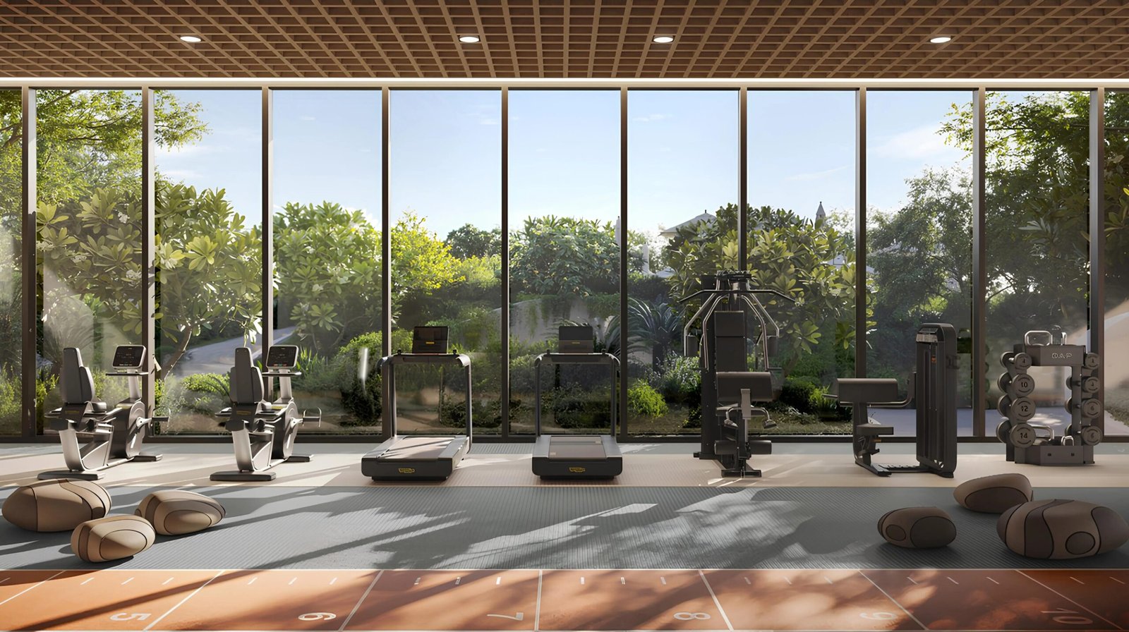 A full-equipped gym offering modern equipment, training zones, and wellness areas for a complete workout routine.