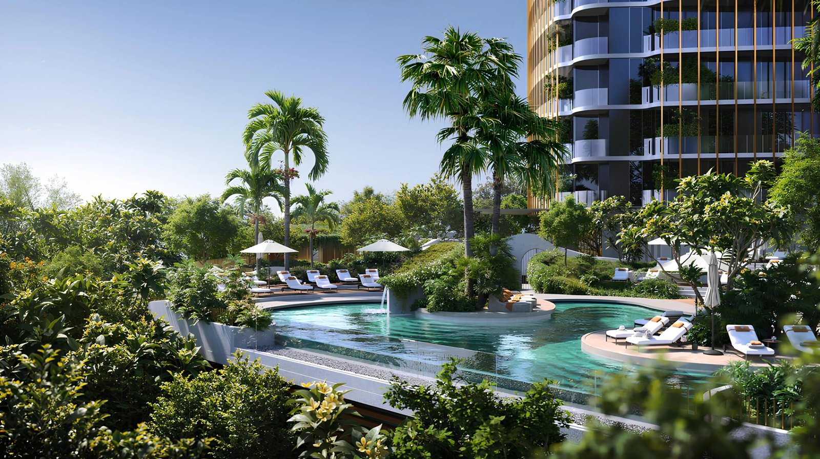 The podium is designed around a forest-inspired landscape, giving residents a refreshing and calming environment right at their doorstep. The landscape design is crafted to provide shaded areas, restful pathways, artistic installations, and secluded seating zones, offering residents a serene escape from the fast-paced city.