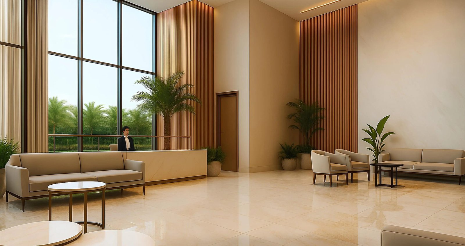 An elegant entrance lobby that creates a strong first impression and sets the tone for the project's refined interior design.