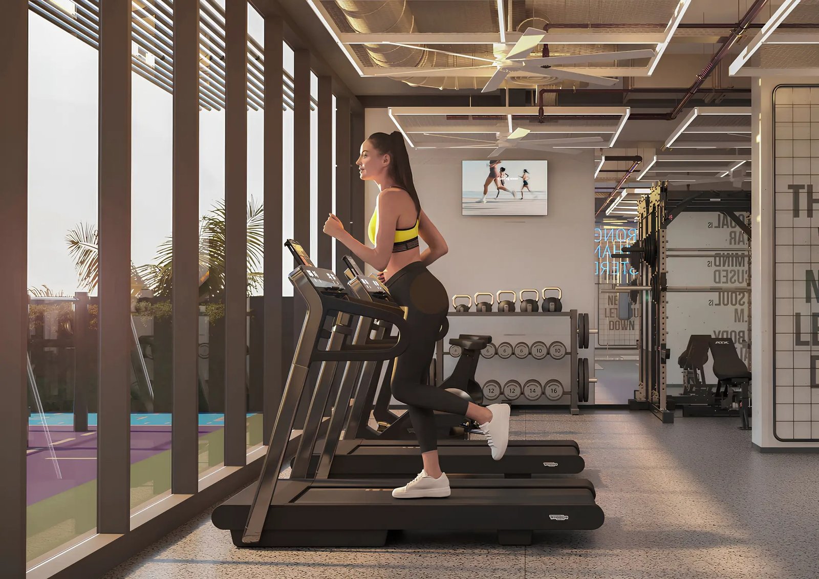 The development offers a state-of-the-art fitness center with advanced equipment, yoga spaces, and a CrossFit zone to support a healthy lifestyle.Coworking Space & Café Lounge