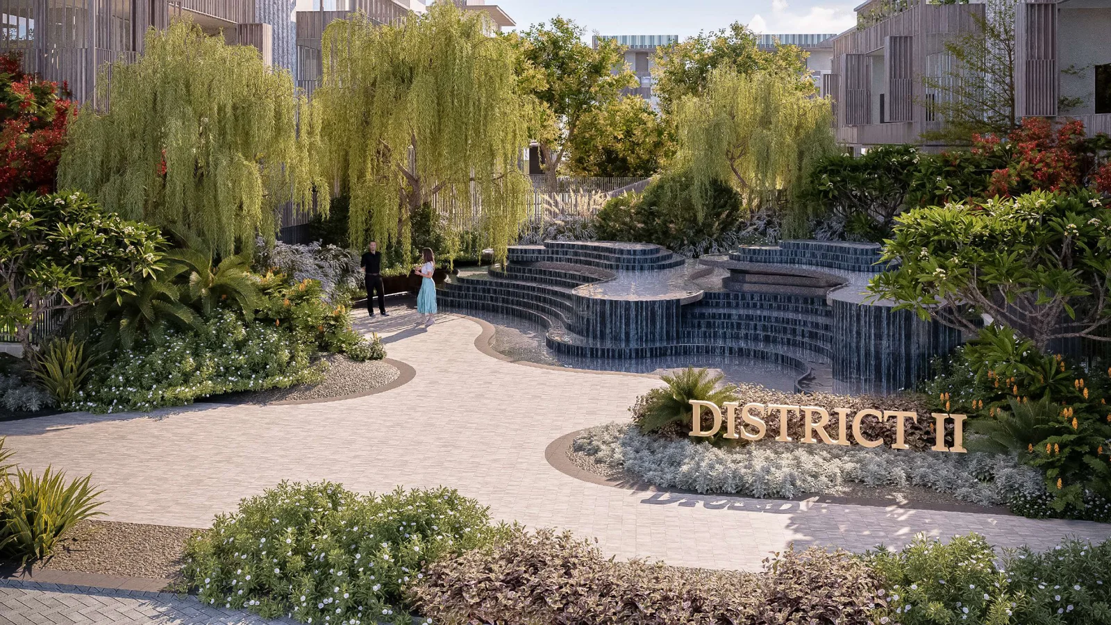 - Private swimming pools with landscaped gardens