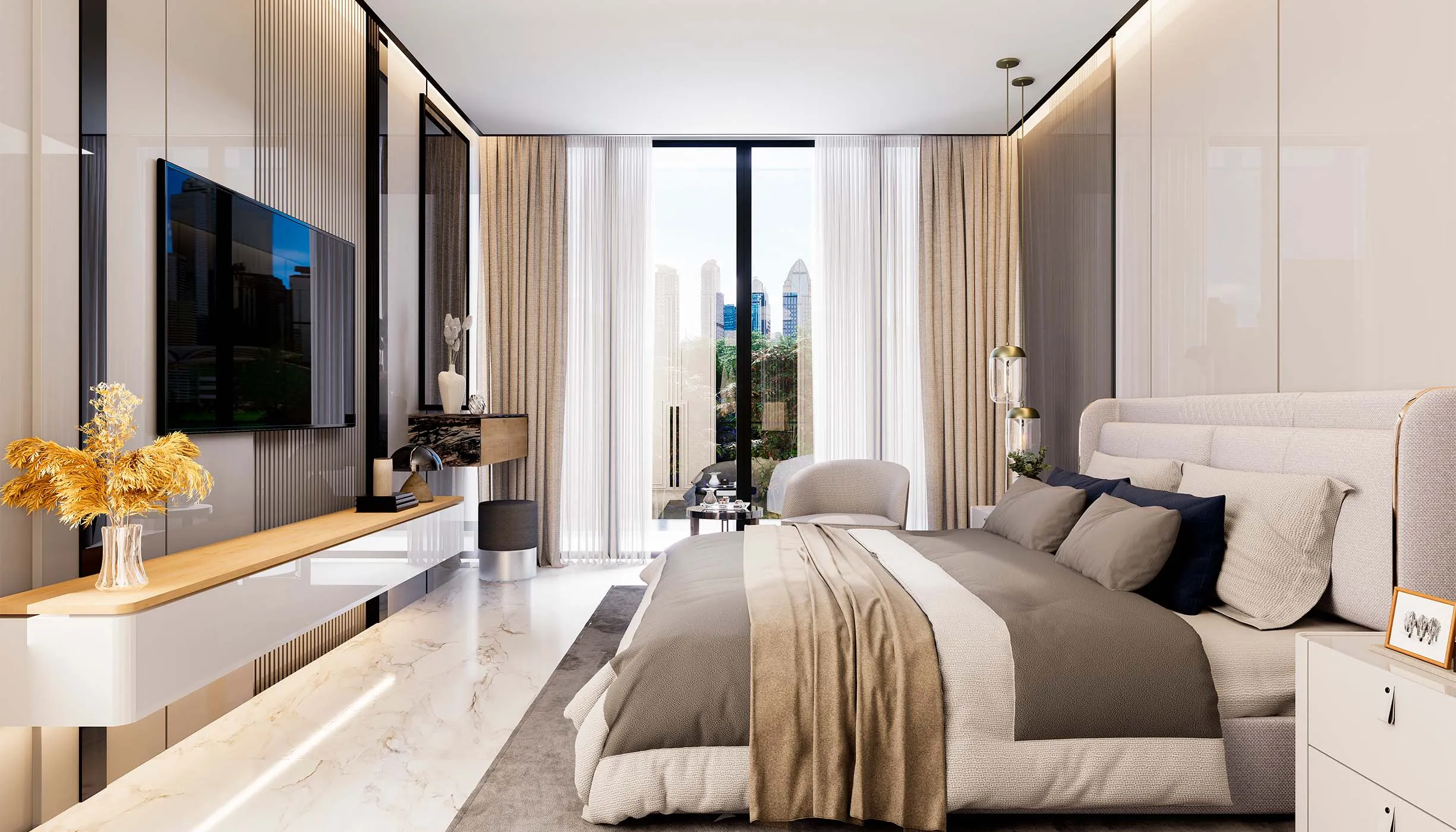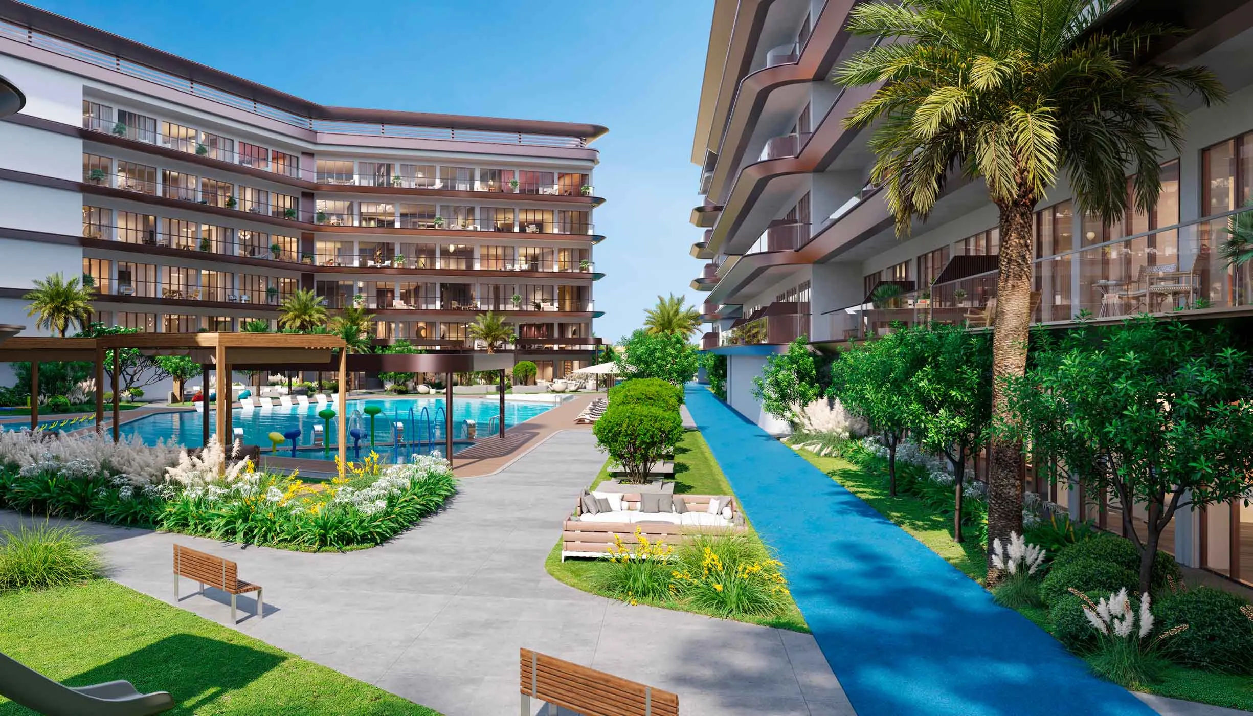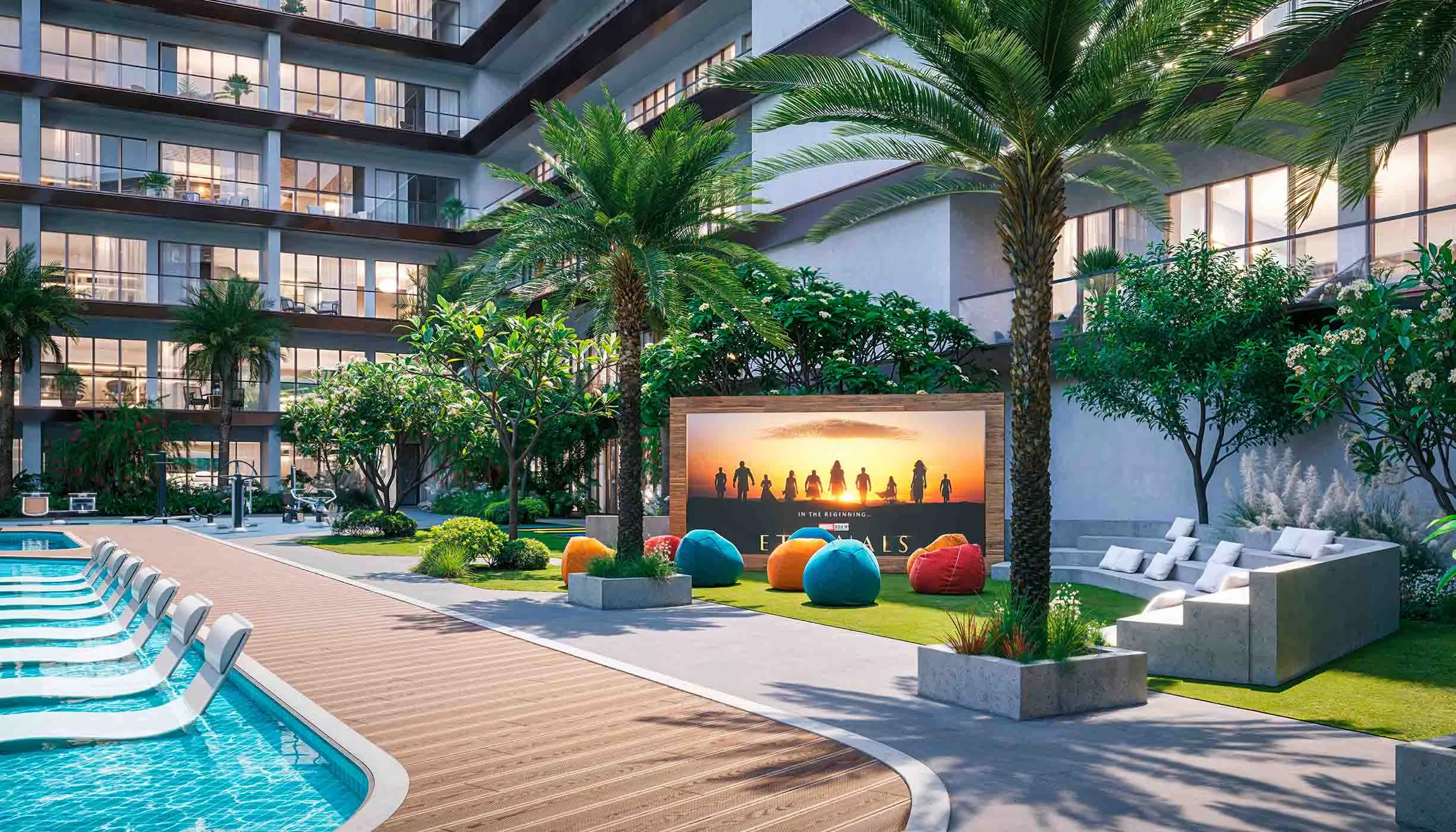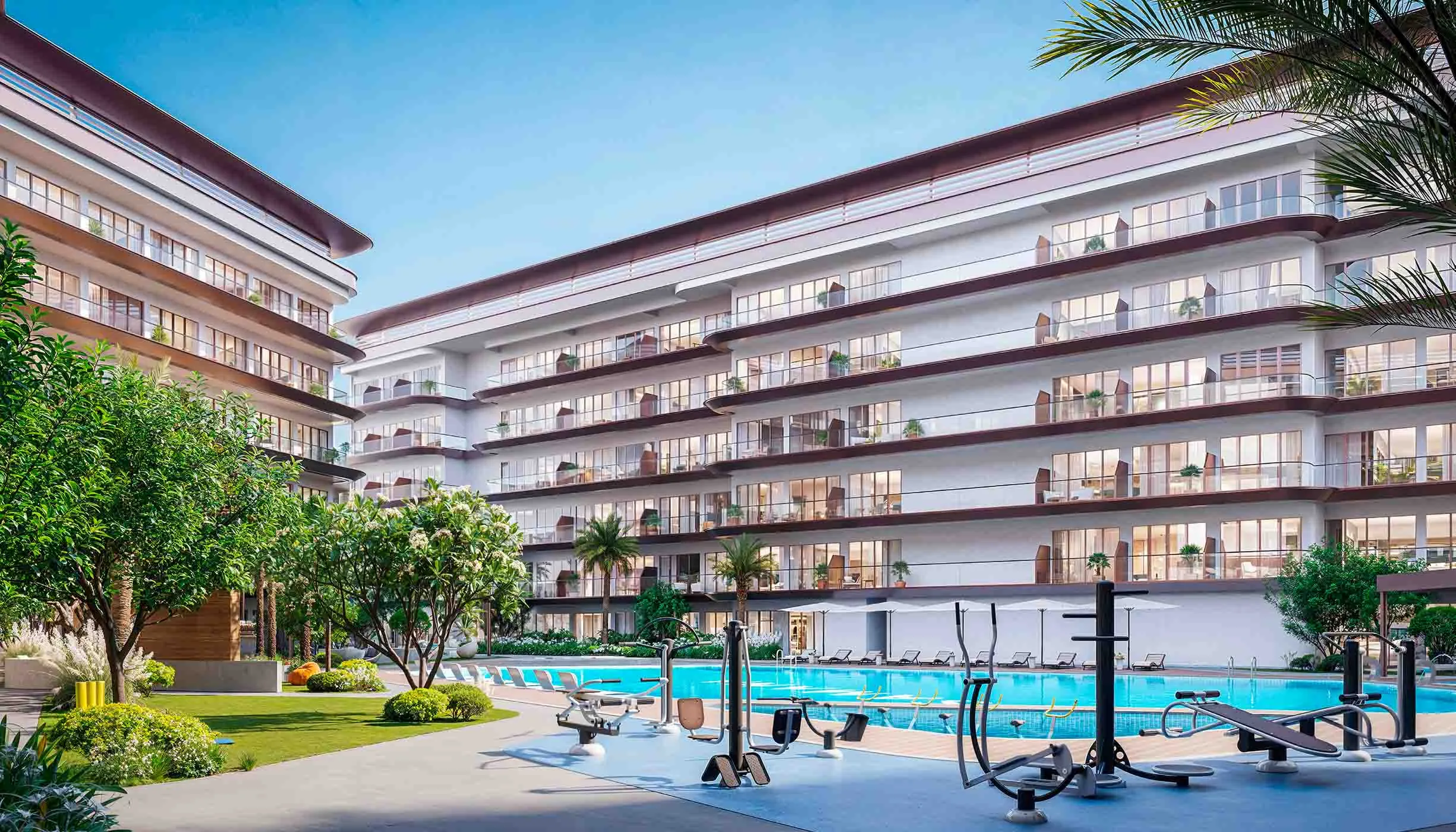 Blending modern elegance with resort-style features, the project offers studios, 1-bedroom, and 2-bedroom apartments, all with open-plan layouts, premium finishes, and smart technology integration.
