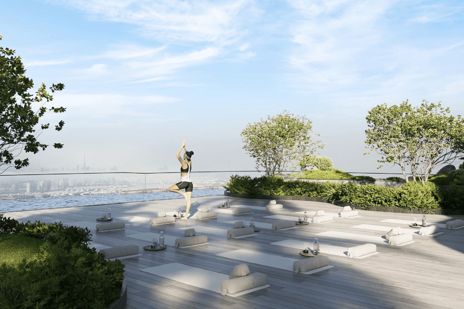 Dedicated rooftop areas offer serene spaces for yoga and meditation, allowing residents to connect with nature and unwind with panoramic city views.Open-Air Fitness Areas