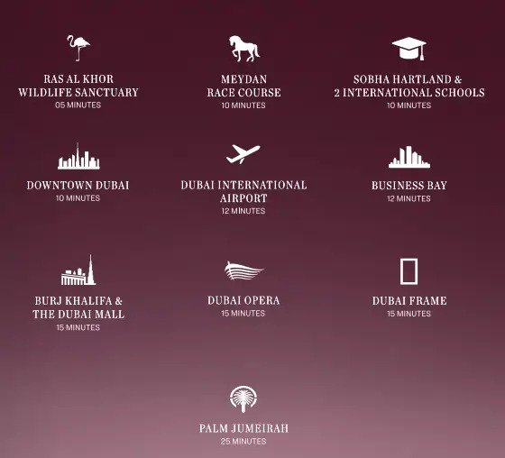 Sobha Skyvue Altier benefits from excellent connectivity to major Dubai landmarks and attractions, making it an ideal choice for residents who value both accessibility and lifestyle: