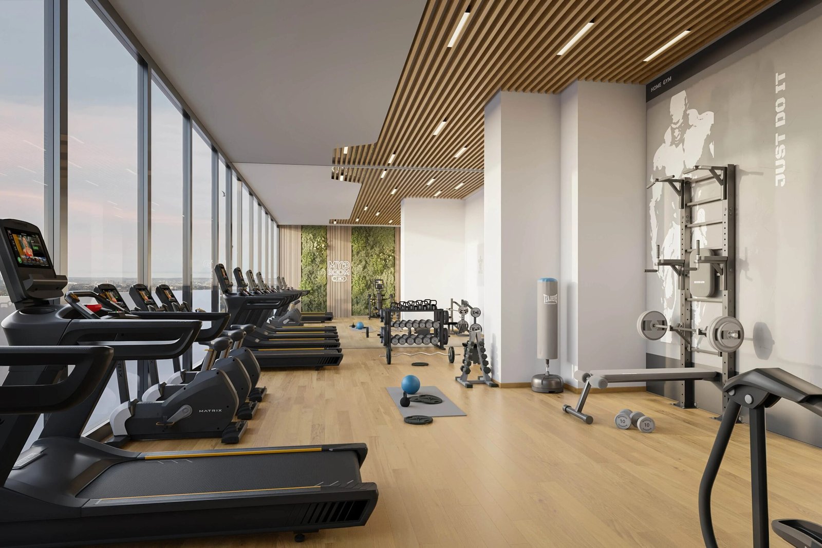 A fully equipped gym ensures residents maintain an active and healthy lifestyle without leaving the comfort of the building.