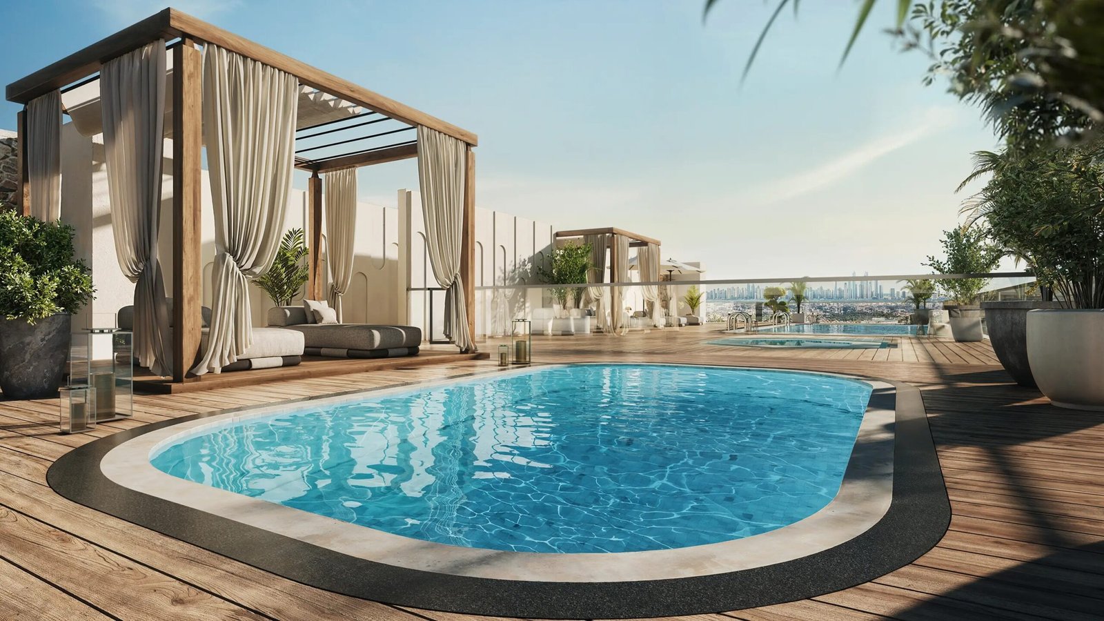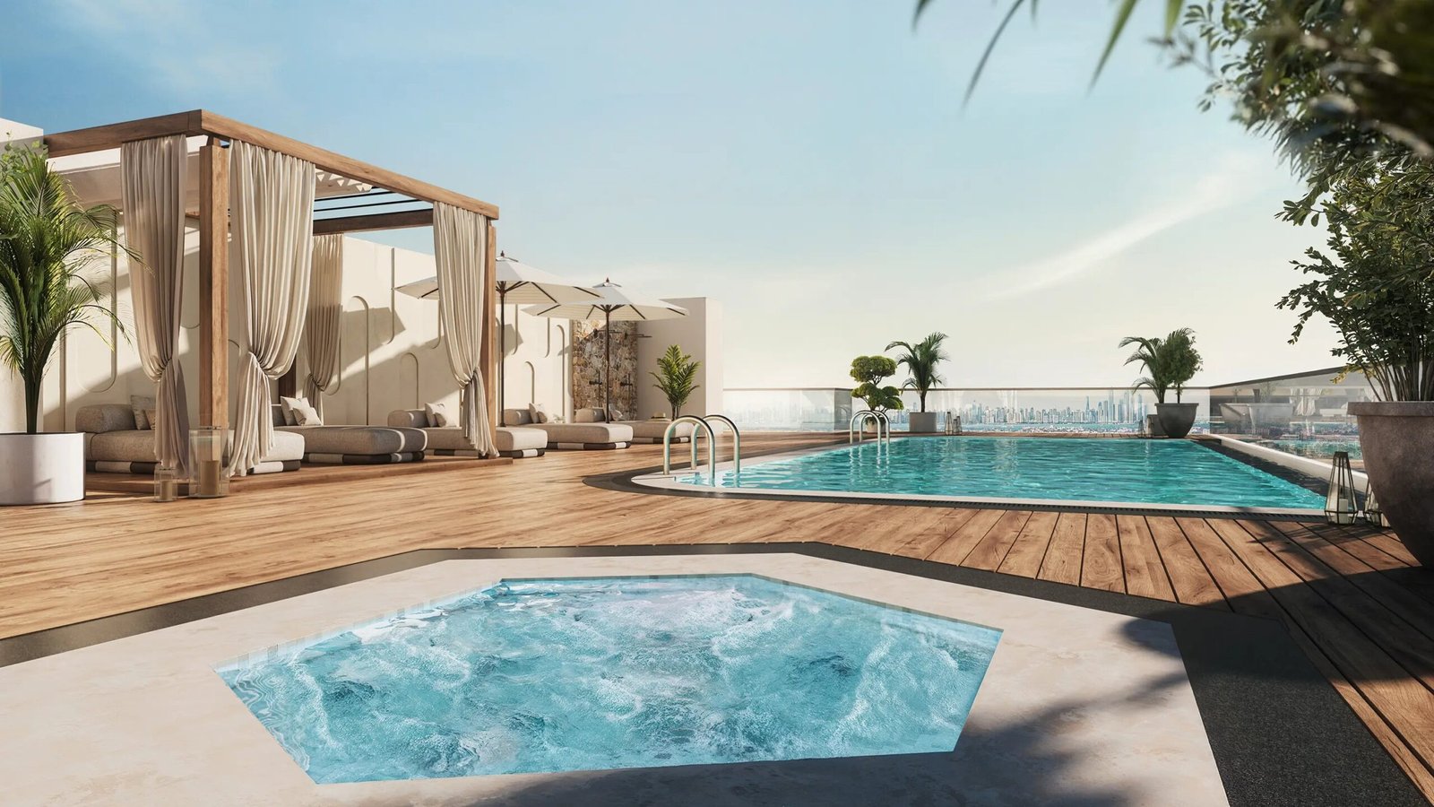 Symbolic Altus features a luxurious rooftop pool that offers residents a relaxing and scenic leisure experience. The elevated pool area includes a Jacuzzi and panoramic views of the city.