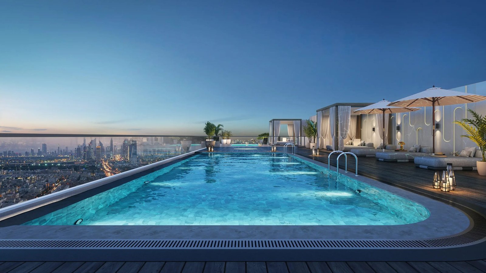 Residents can unwind at the pool deck and lounge areas, enhancing the luxury resort-style living experience.