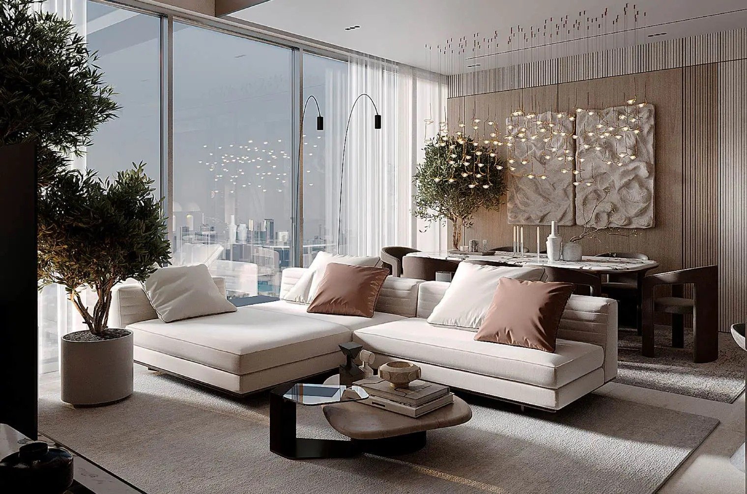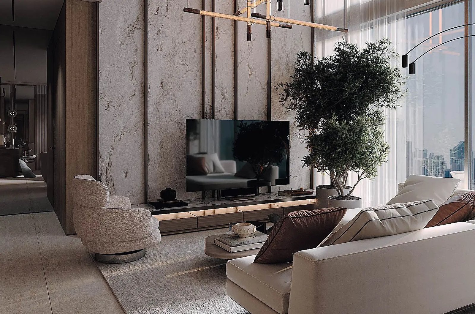 The project includes studios, one-bedroom apartments, as well as one- and two-bedroom apartments with an office, and duplex apartments with three bedrooms and an office. The interior of the apartments is designed with the desire for comfort and luxury in mind, where every detail is thought out to create a unique atmosphere. Modern design is combined with timeless elegance.