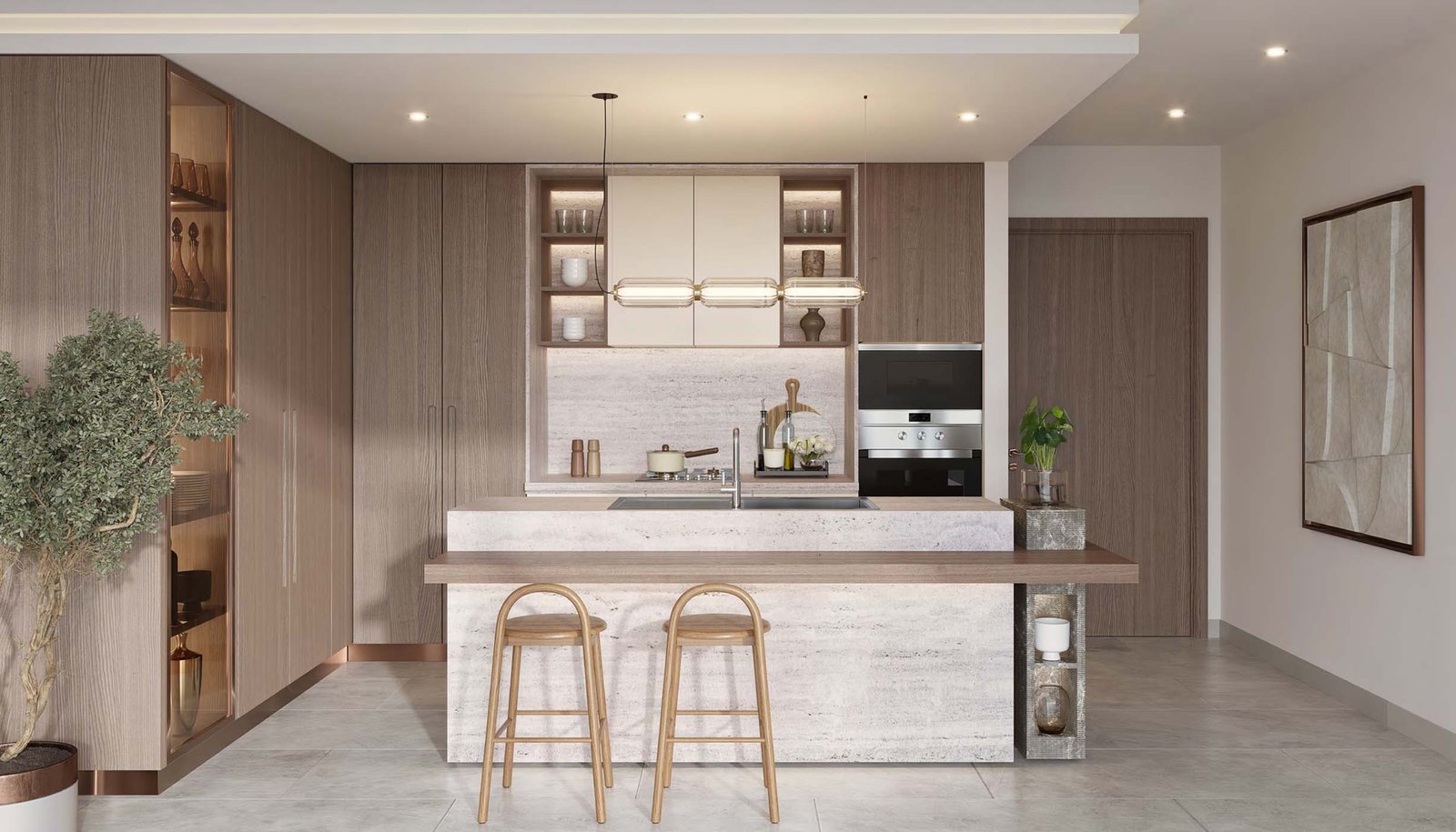 The project comprises two elegantly designed towers connected by a beautifully landscaped courtyard, fostering a sense of community while ensuring privacy. Each residence is bathed in natural light, thanks to expansive floor-to-ceiling windows, and features premium materials, refined textures, and contemporary aesthetics.