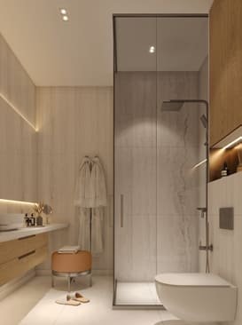 The towers reach skyward, their architectural language speaking of refined elegance with natural materials, soft edges, and layering. From within your residence, large windows frame views of the surrounding parks, internal gardens, and the JVC skyline beyond. Light spills into living rooms and bedrooms, delivering a feeling of openness and calm.