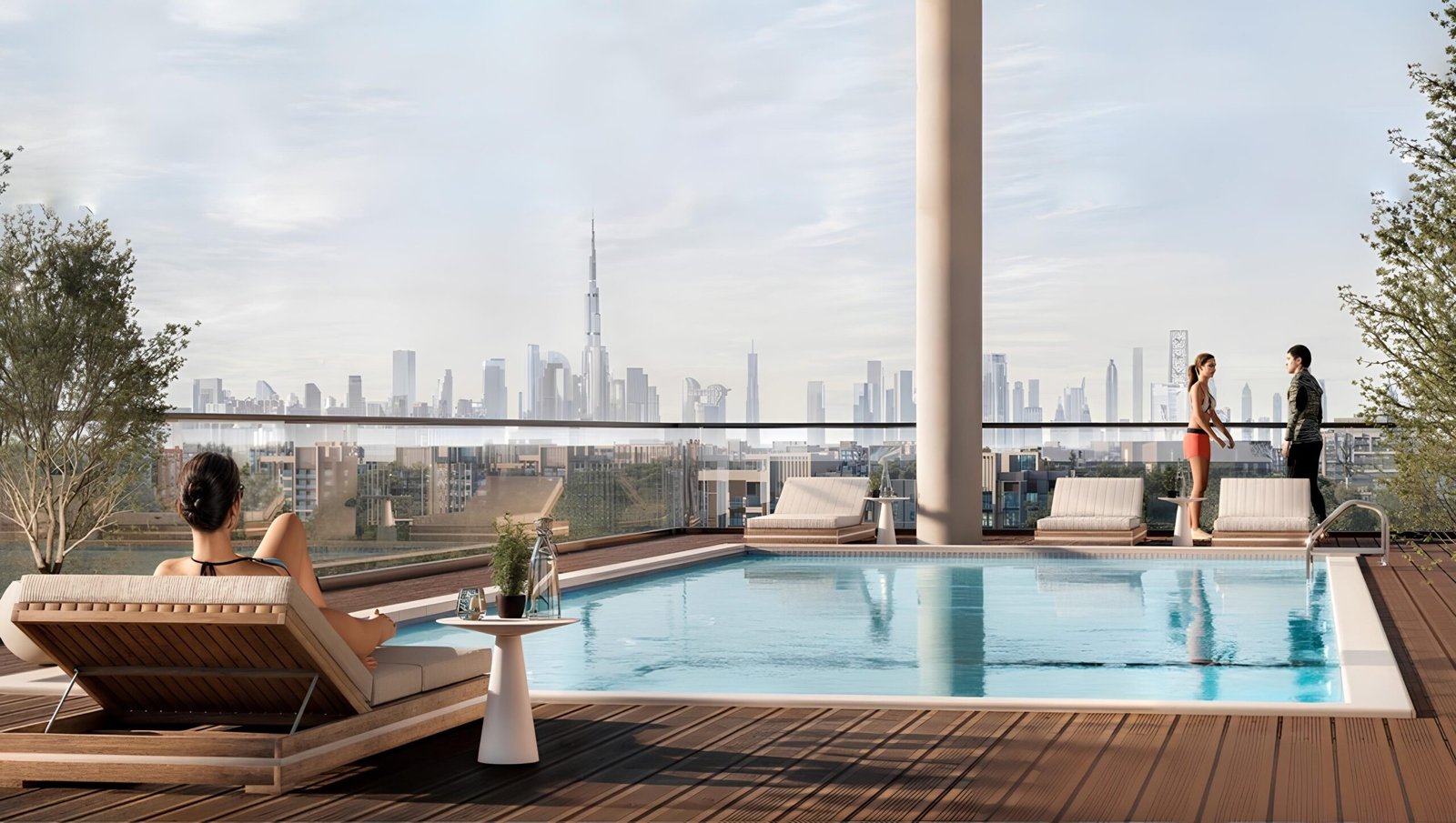The architecture features clean lines, glass detailing, and sleek metal accents, creating a modern and visually appealing residential atmosphere. Its placement near Nad Al Sheba Park and major Dubai destinations enhances its attractiveness for those who prioritize accessibility and a well-balanced lifestyle.