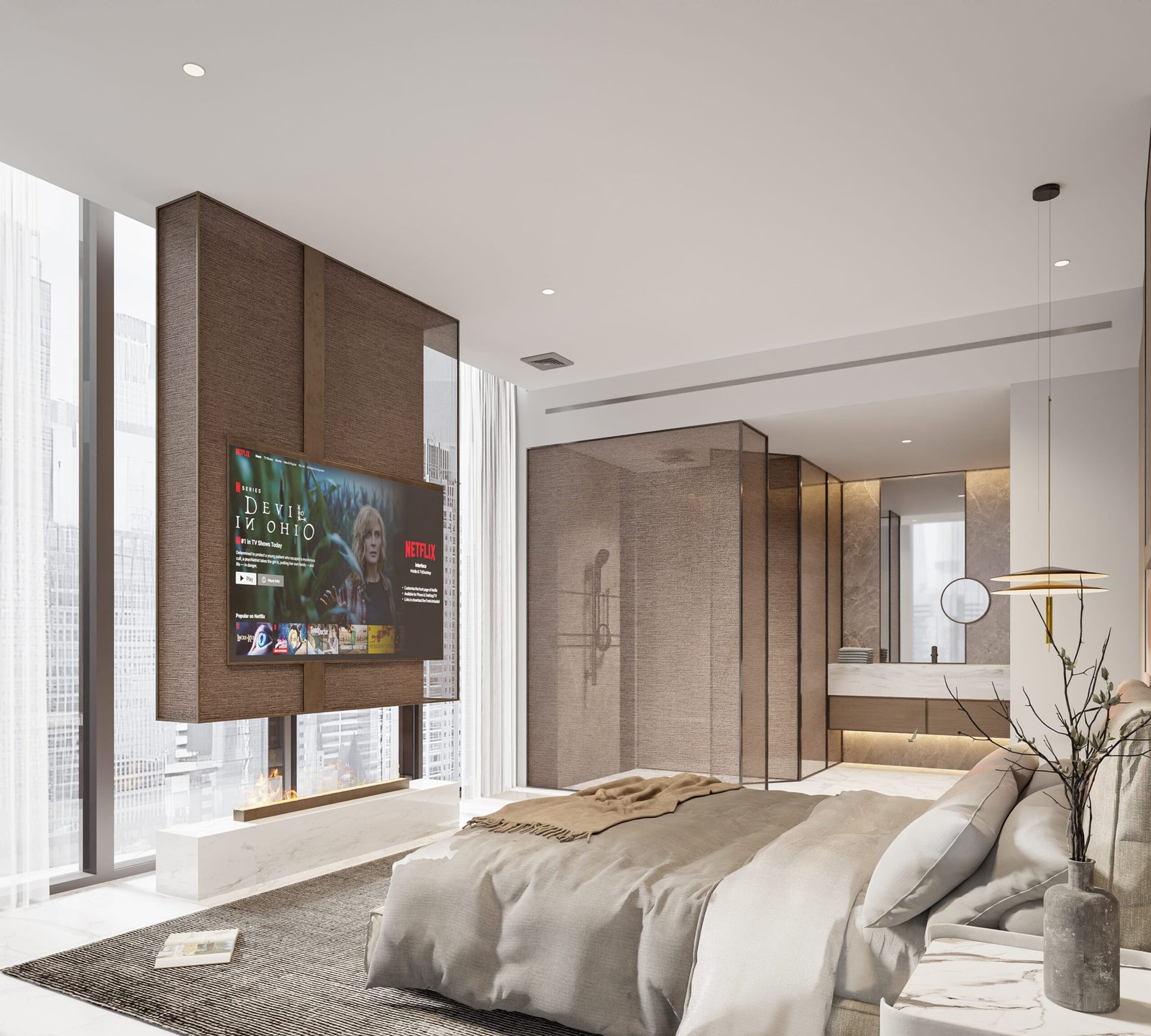 Each apartment has been crafted with attention to detail, offering warm interior finishes that create a calm and cozy ambiance. The open layouts maximize internal space, while large windows bring in abundant natural light and offer captivating views. Bathrooms are designed with premium sanitary ware, soft lighting, rain showers, and functional layouts to enhance the everyday living experience.