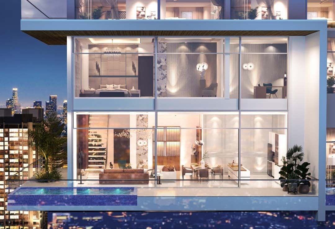 Dubai’s first Aston Martin-branded residences with in-unit pools and iconic sky bridges.