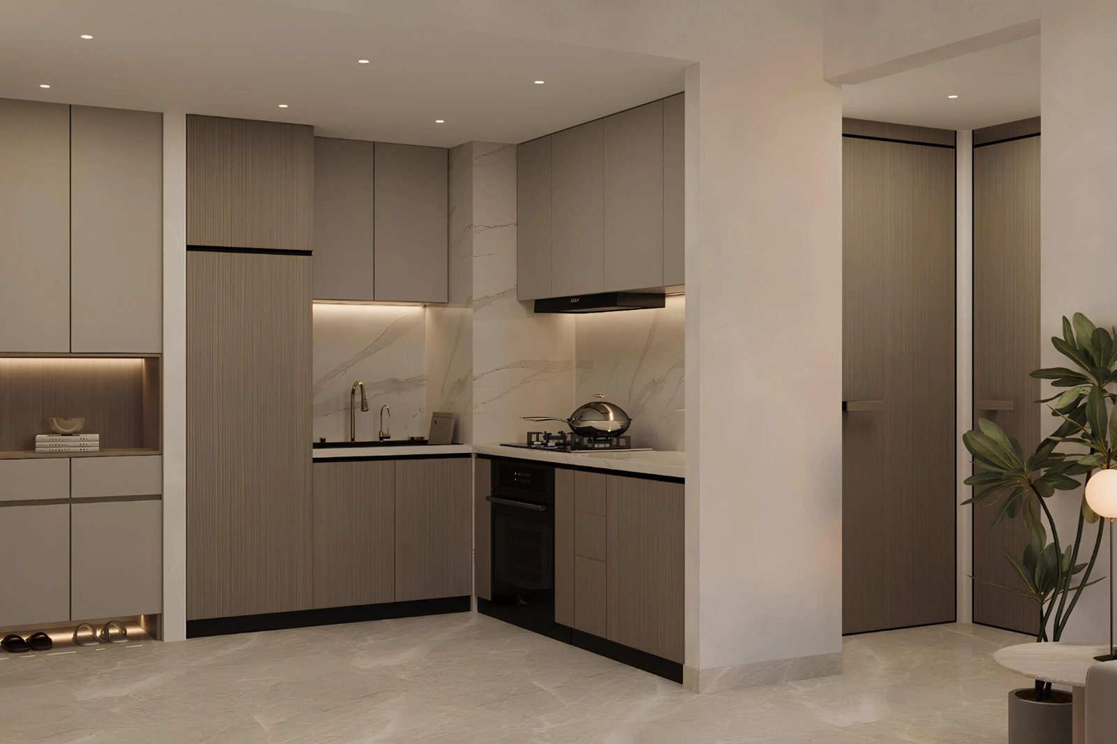 Interiors emphasize an open-concept design to encourage seamless interaction between living spaces, making the units perfect for entertaining guests or enjoying quiet family moments. The use of neutral tones and high-quality materials throughout the apartments creates a warm and inviting ambiance.