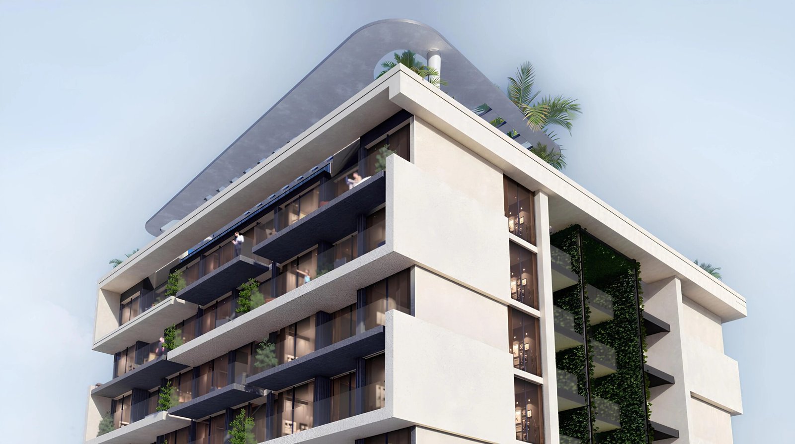 Vista Verde Dubai is a mid-rise complex composed of a ground floor, a podium, and eight residential floors. The design embraces clean, minimalist lines highlighted by a sophisticated color palette of gray, white, and beige tones. Glass railings enhance the façade’s elegance, providing a modern aesthetic appeal.