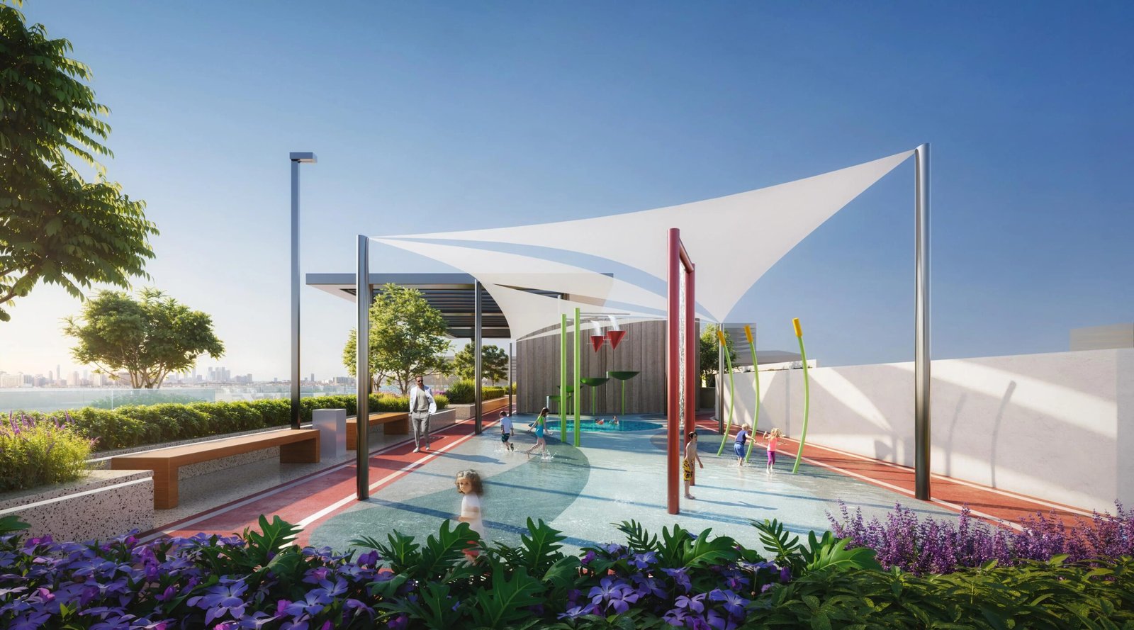 A water play area for younger residents, providing safe aquatic fun.
